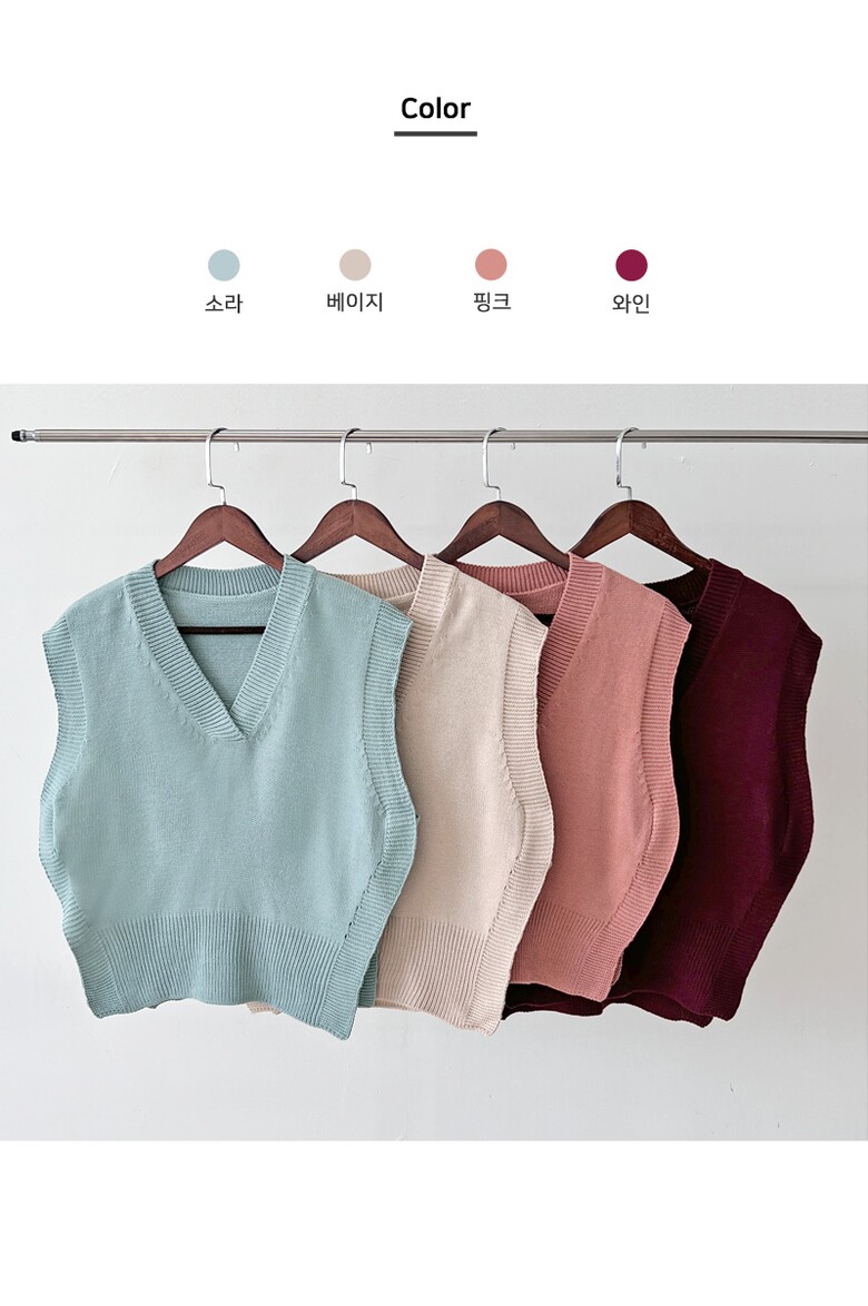 블레오 여성 봄 가을 브이넥 옆트임 데일리 니트 조끼