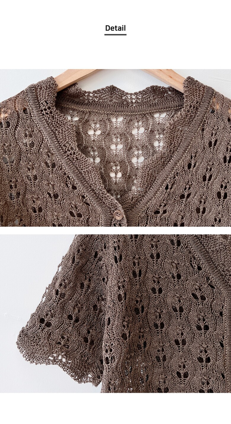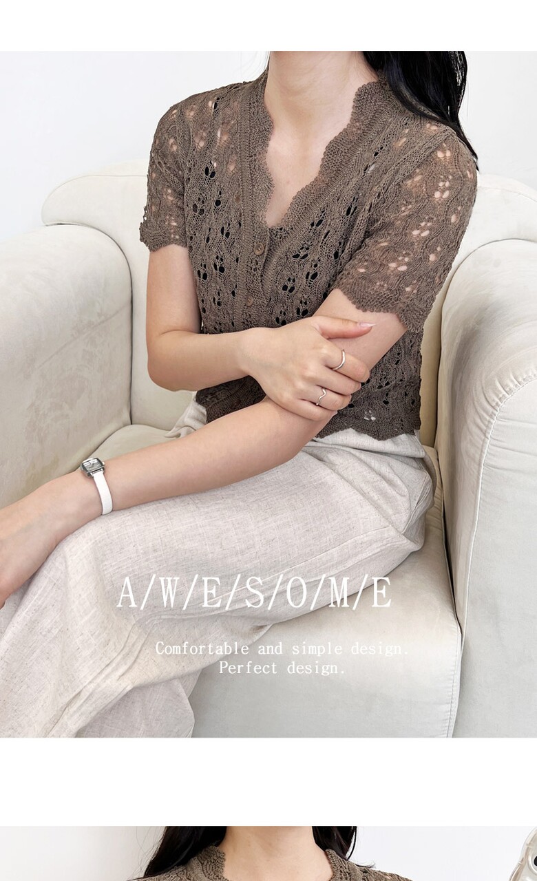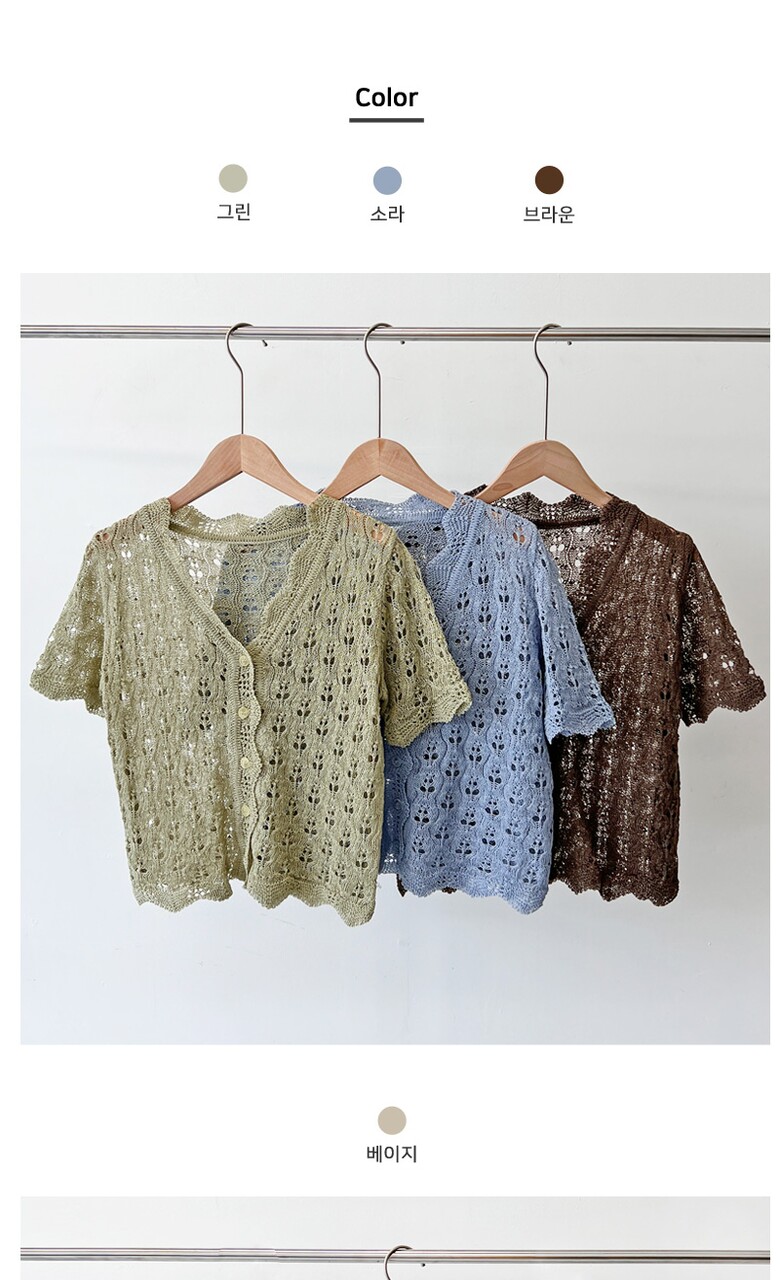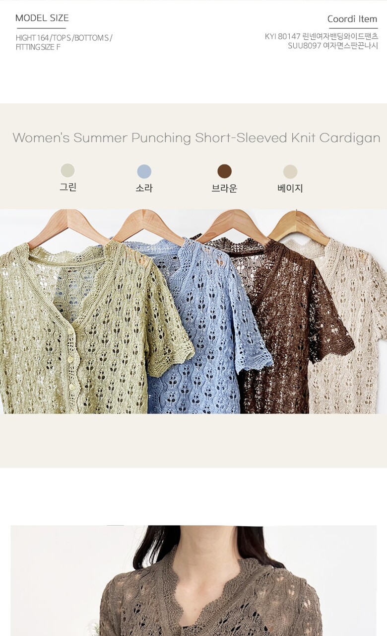 블레오 여성 여름 브이넥 크롭 펀칭 예쁜 반팔 니트 가디건