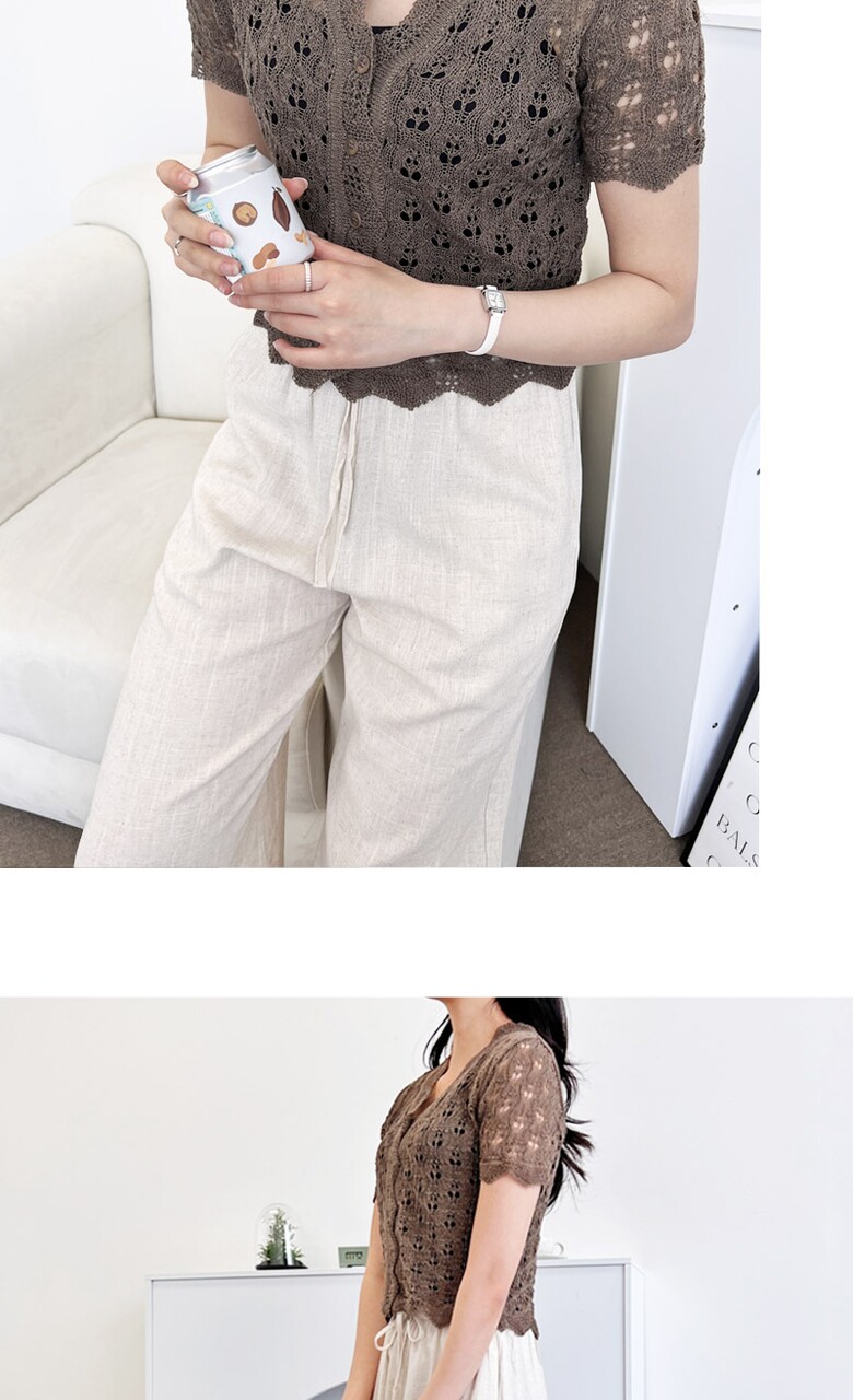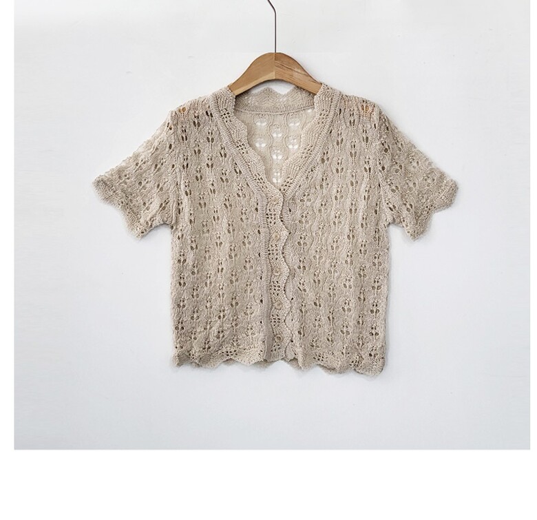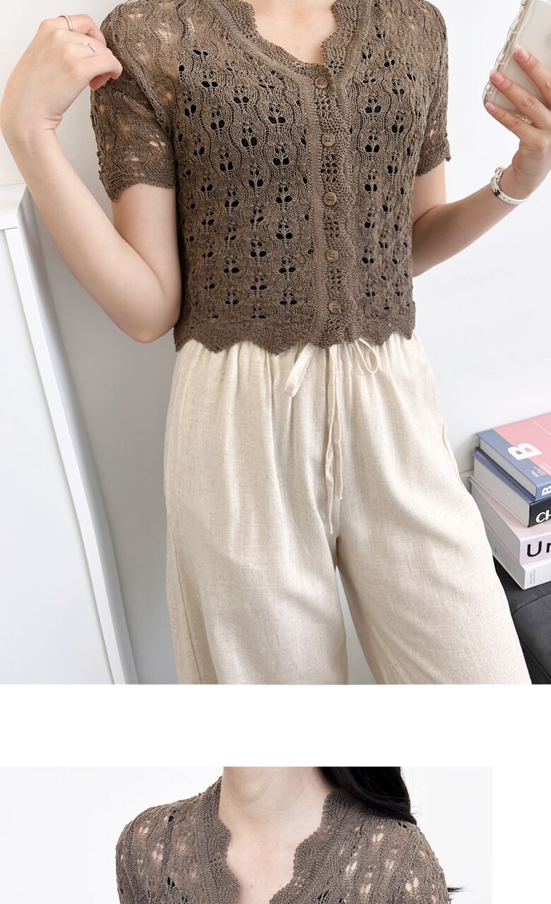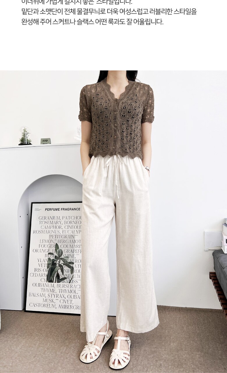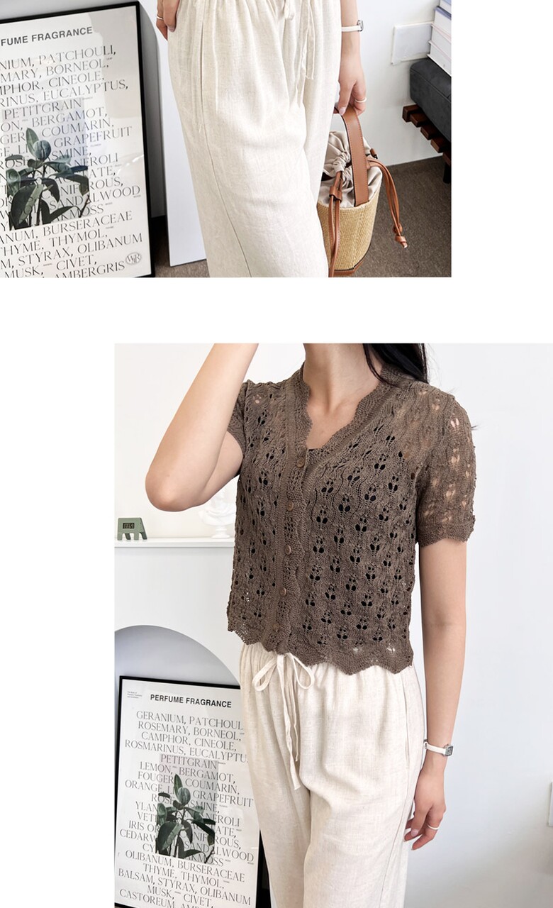 블레오 여성 여름 브이넥 크롭 펀칭 예쁜 반팔 니트 가디건