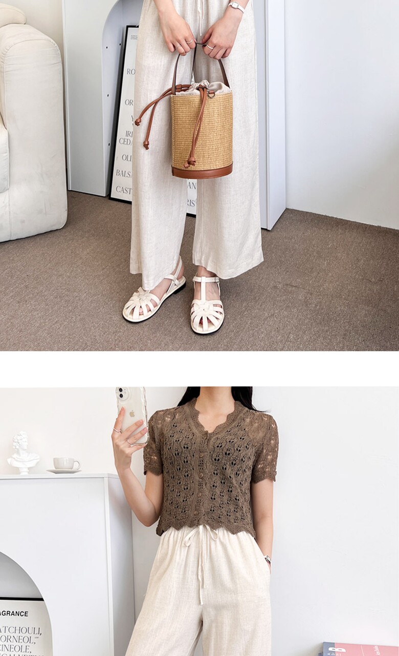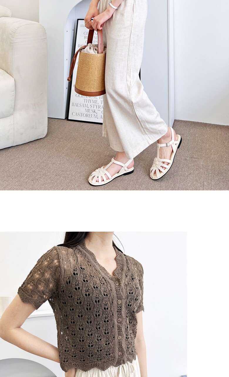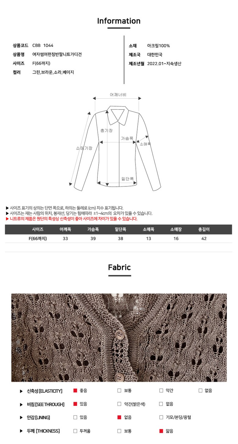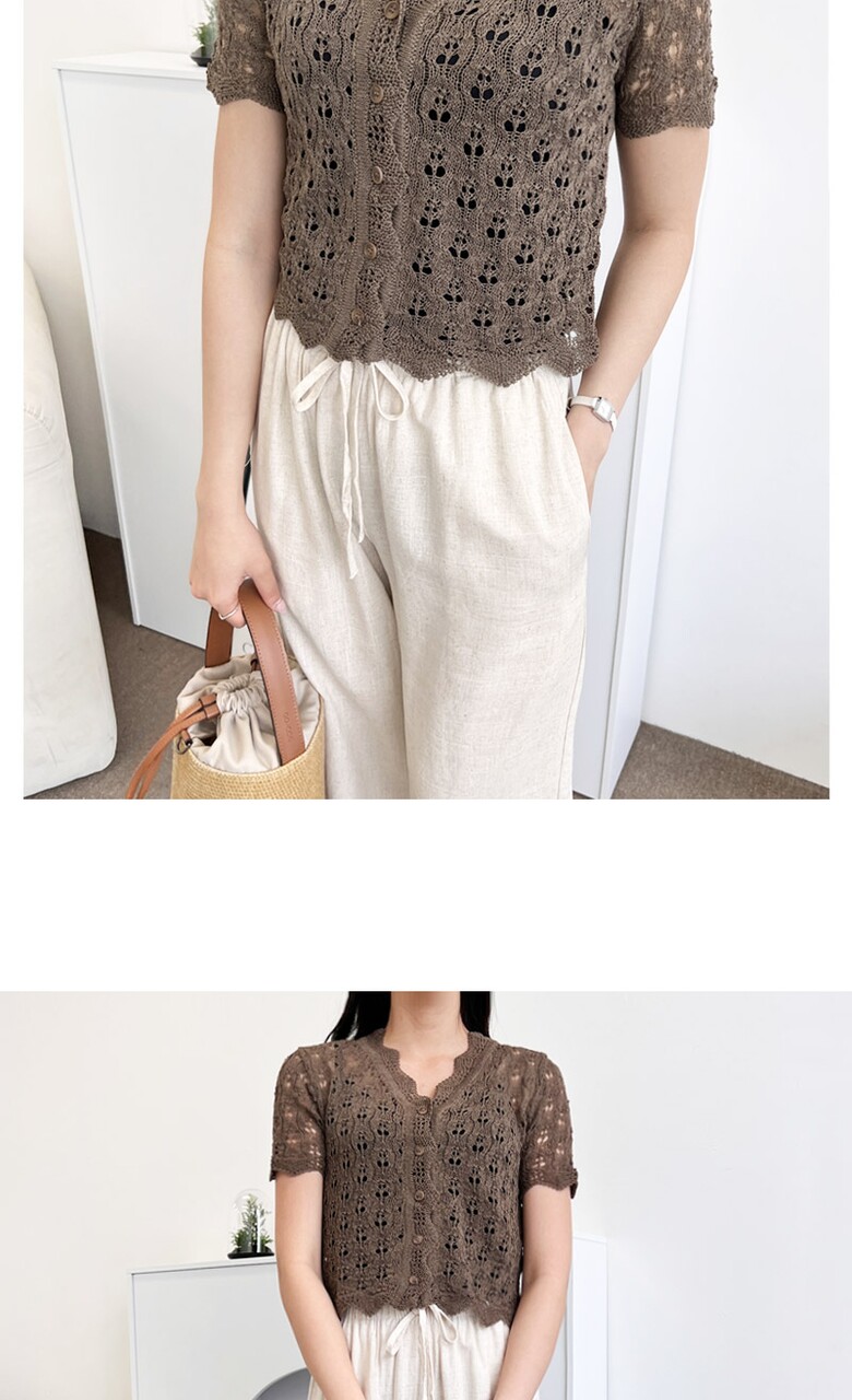 블레오 여성 여름 브이넥 크롭 펀칭 예쁜 반팔 니트 가디건