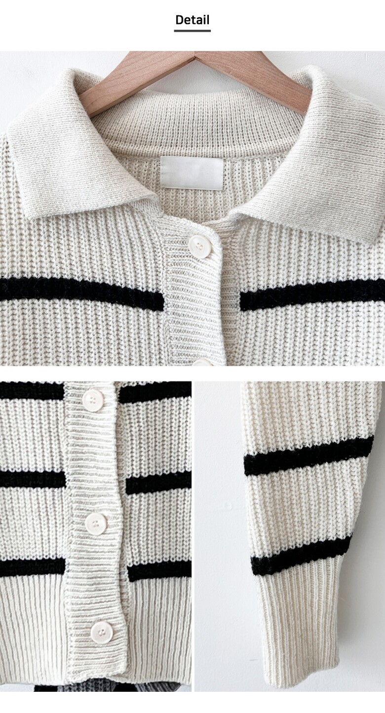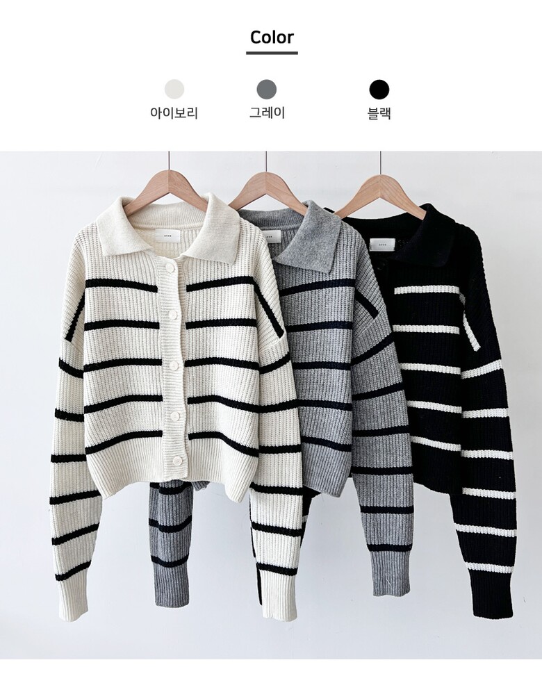 블레오 여성 가을 스트라이프 카라 예쁜 데일리 니트 가디건