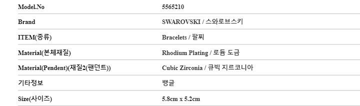 7. 주요 사양 | 로듐 도금 팔찌 |