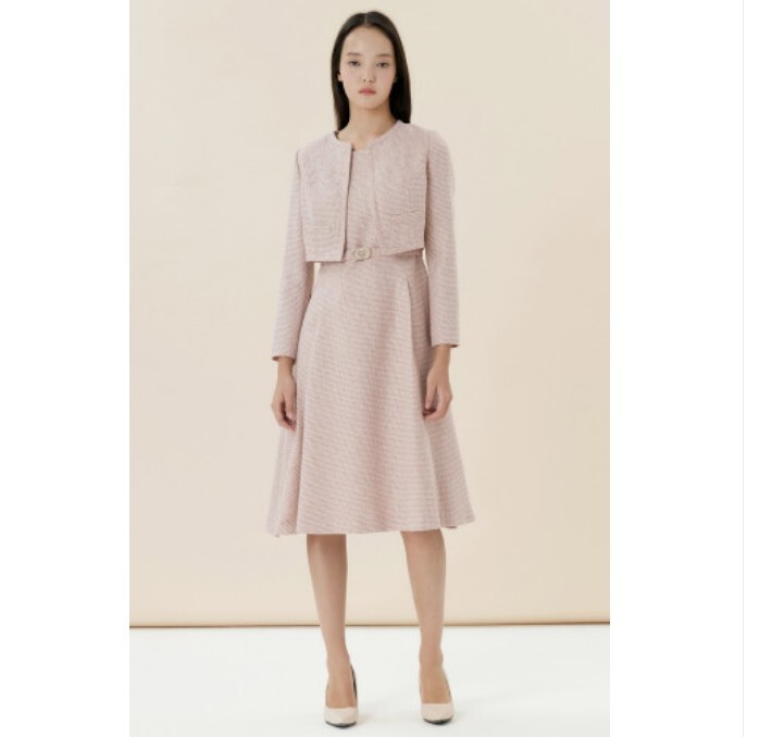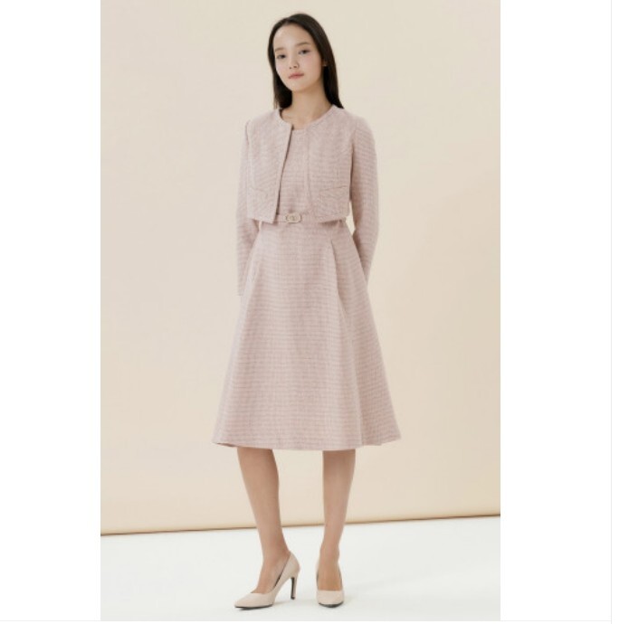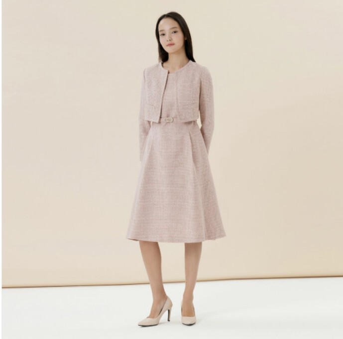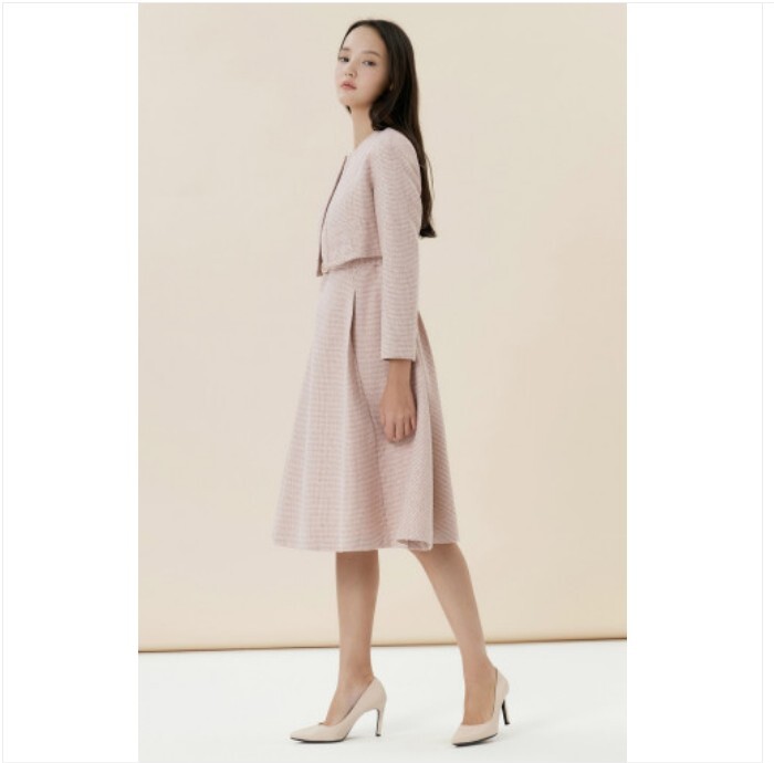 트위드 크롭 자켓과 민소매 원피스를 셋업 착용한듯한 디자인이 매력적인 원피스입니다.