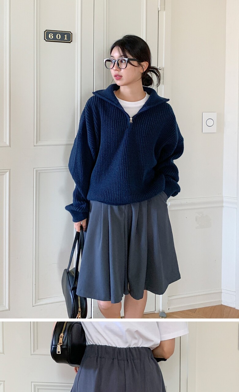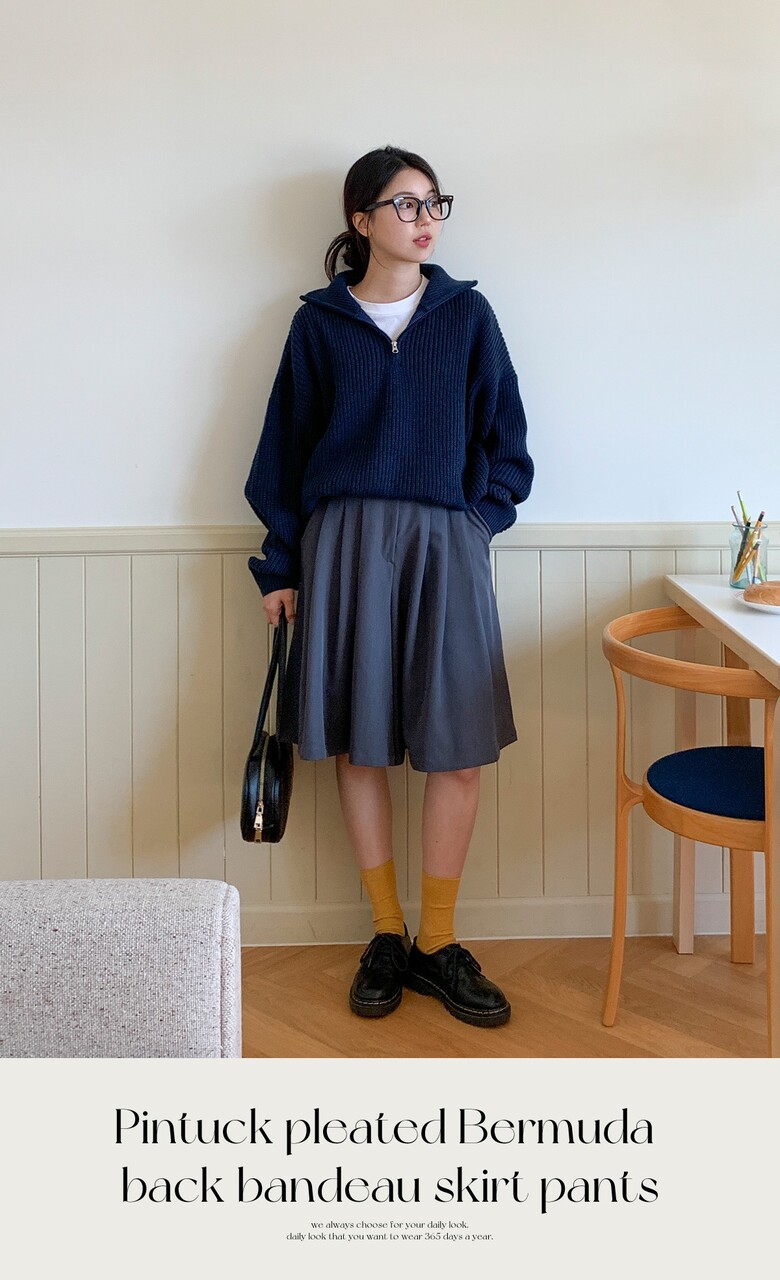 [ 티다나 핀턱 플리츠 버뮤다 뒷밴딘 스커트 팬츠 ]