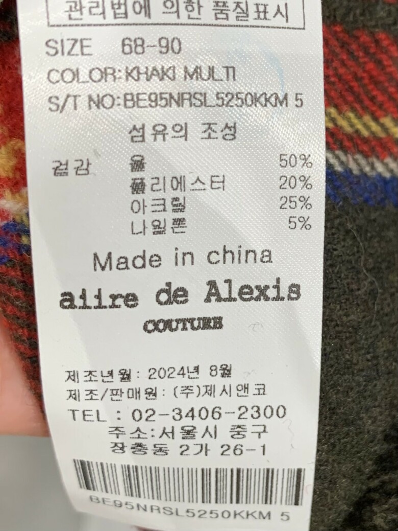 | 1. 제품 소재 (섬유의 조성 또는 혼용률을 백분율로 표시, 기능성인 경우 성적서 또는 허가서) | 폴리에스테르 20%, 아크릴 25%, 나일론 5% |