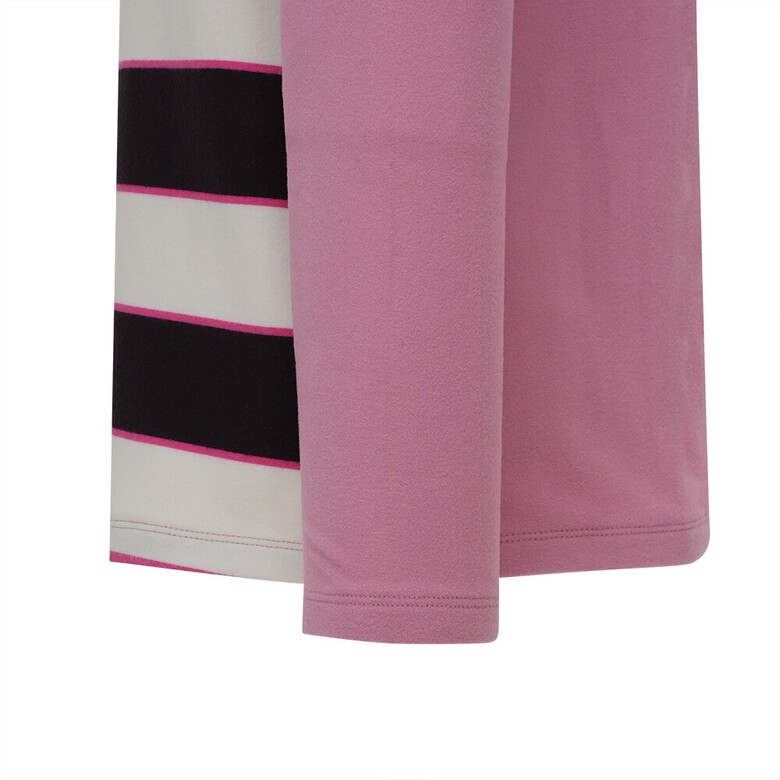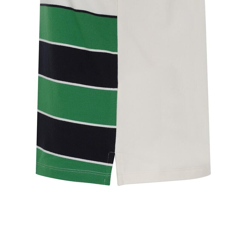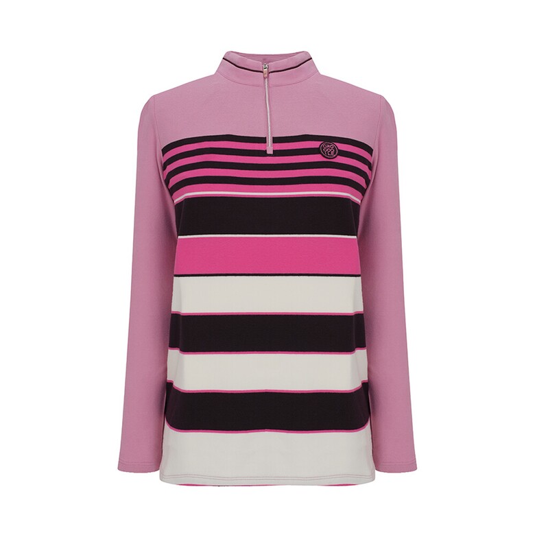 부드러운 코트나 소재를 사용하였고 전판 선염 스트라이프가 캐주얼하면서도 스포티한 반집업 티셔츠
