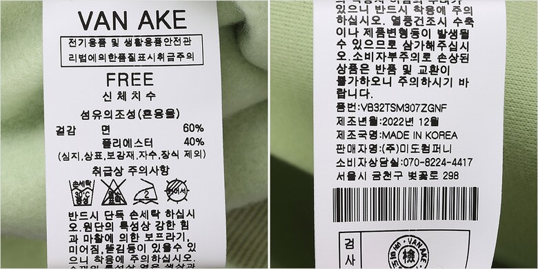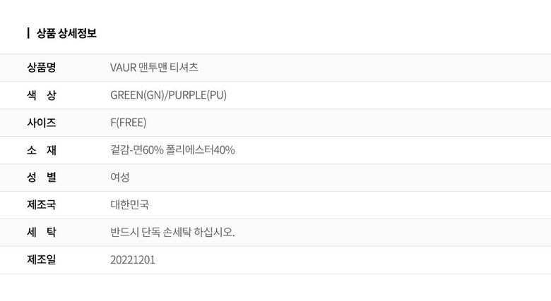 | 6. 세탁방법 및 취급시 주의사항 | 상세페이지 참조 |