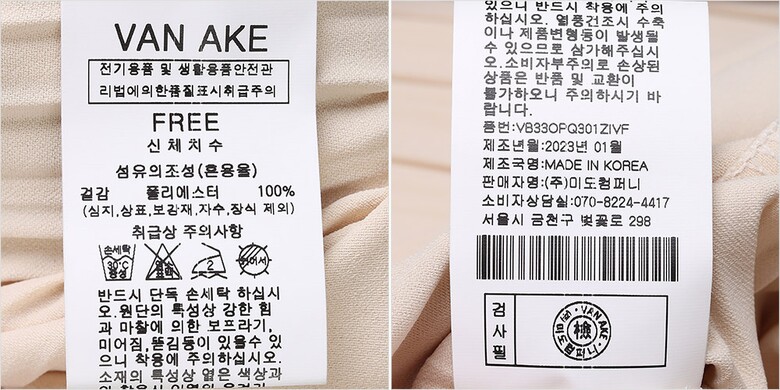 | 6. 세탁방법 및 취급시 주의사항 | 상세페이지 참조 |
