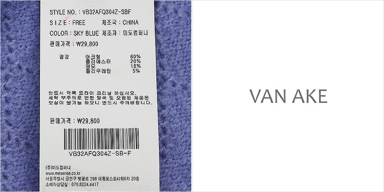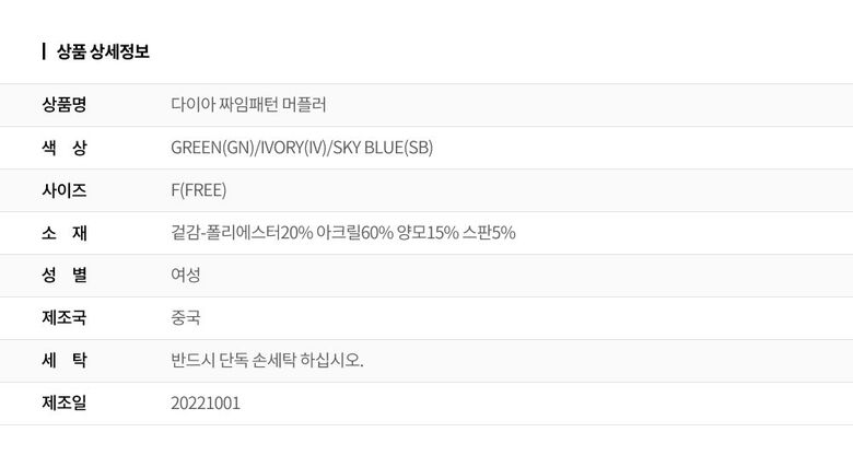 2. 소재 겉감-폴리에스터20% 아크릴60% 양모15% 스판5%