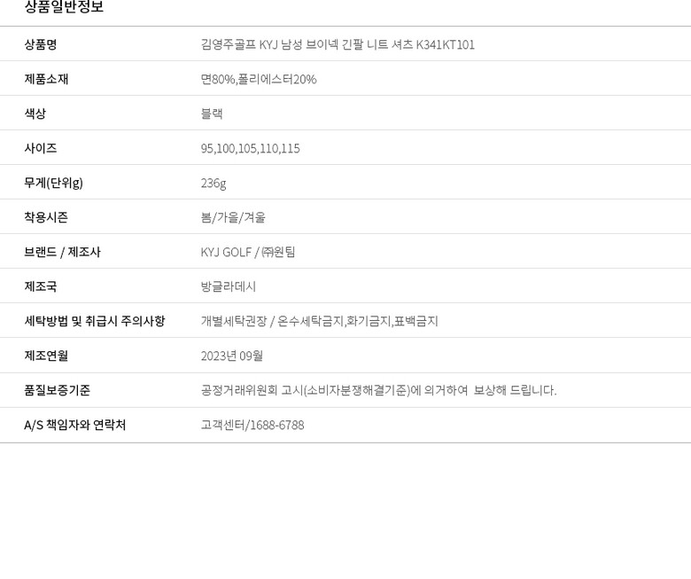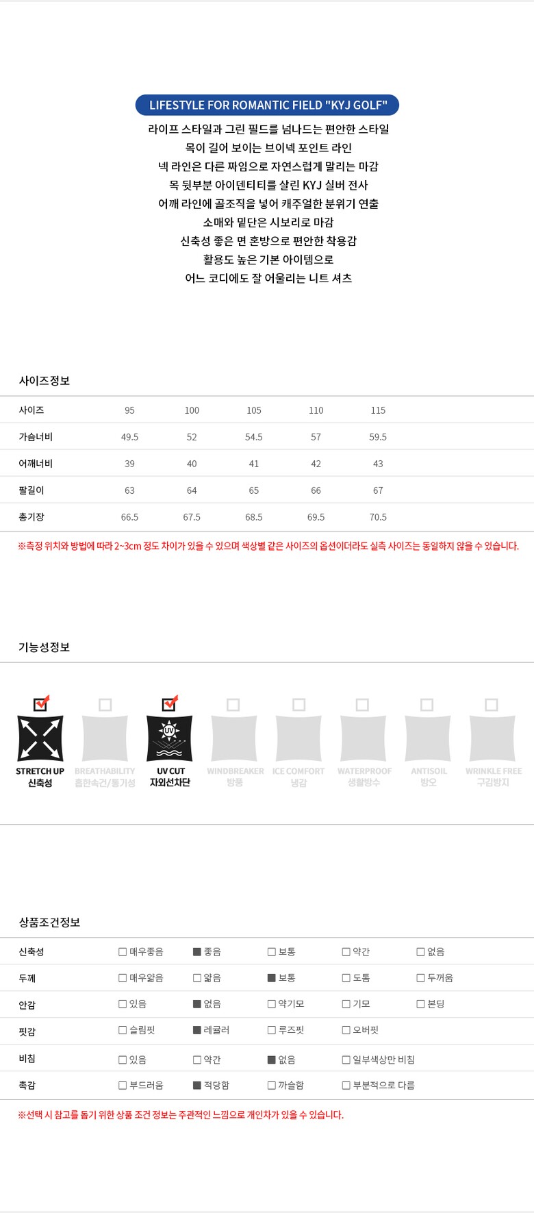 | 1. 제품 소재 (섬유의 조성 또는 혼용률을 백분율로 표시, 기능성인 경우 성적서 또는 허가서) | 상세설명참고 |