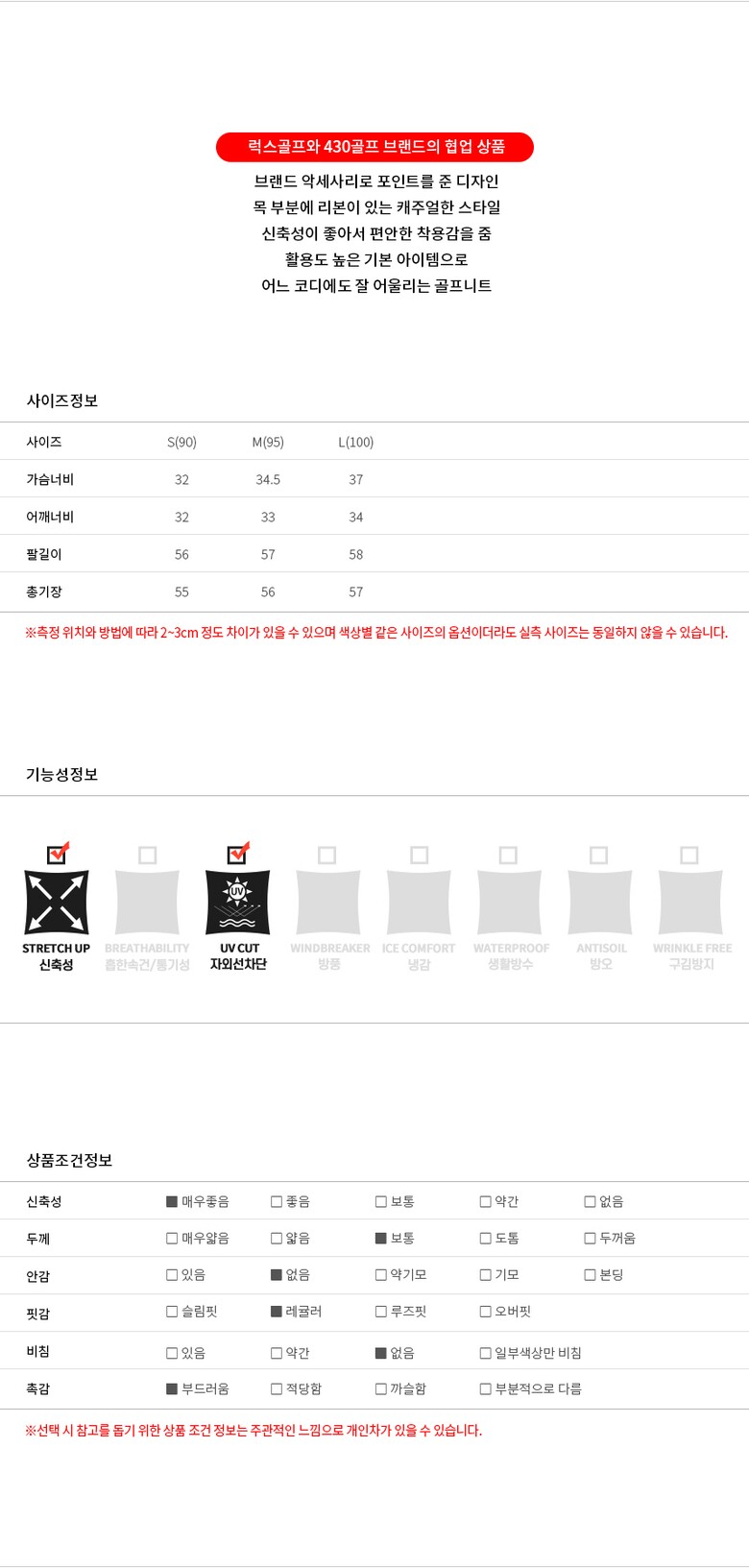 | 1. 제품 소재 (섬유의 조성 또는 혼용률을 백분율로 표시, 기능성인 경우 성적서 또는 허가서) | 상세설명참고 |