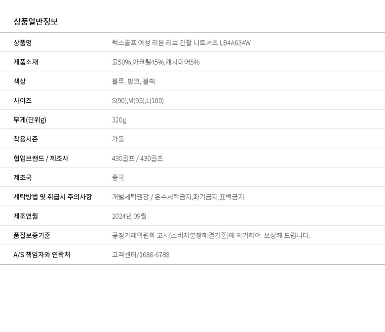 골피아 LB4A634W 여성 리본 리브 긴팔 니트셔츠