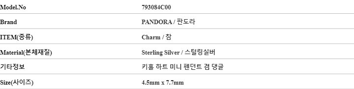 판도라 참 793084C00 판도라 참 미 키홀 하트 미니 펜던트 겸 댕글 실버 참 당일발송