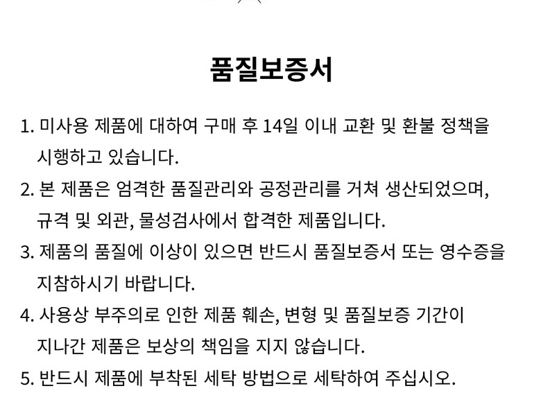 | 7. 품질보증기준 | 관련법 및 소비자분쟁해결기준에 따름 |