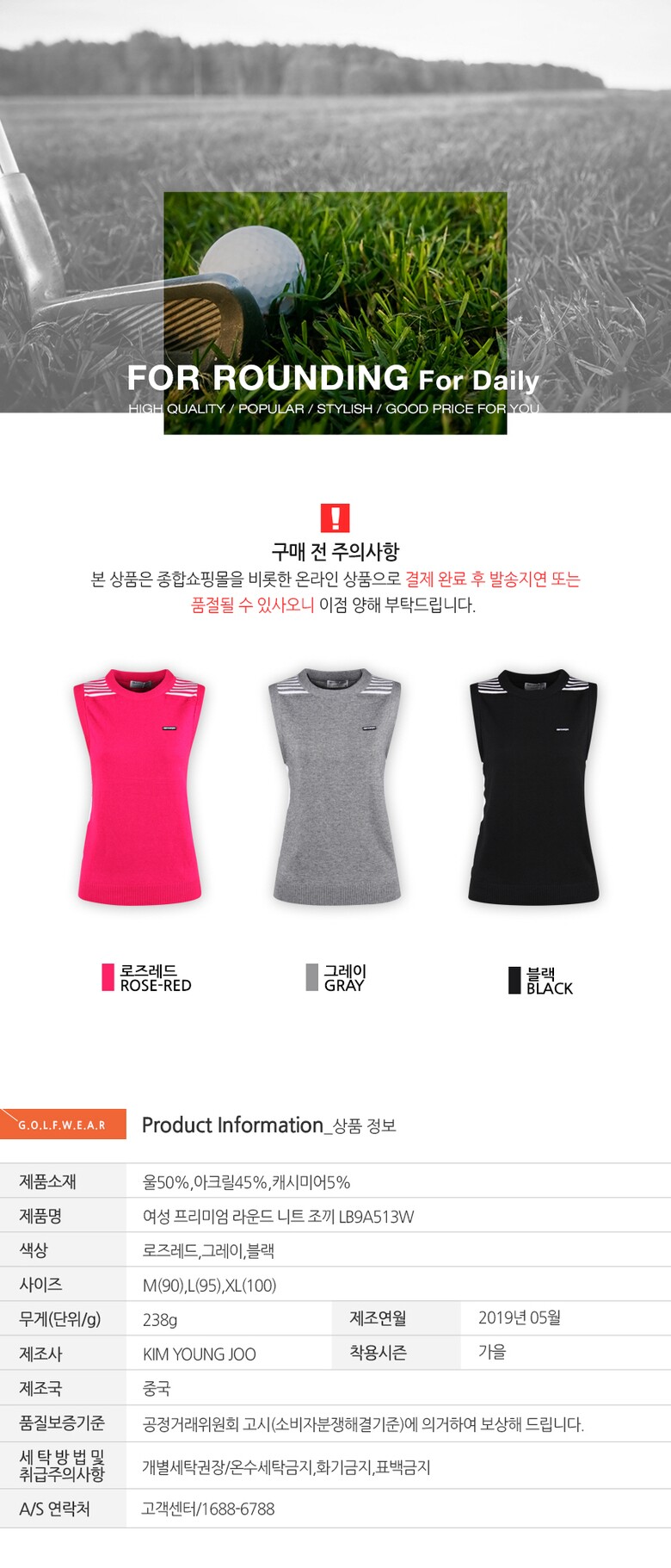 럭스골프 여성 프리미엄 라운드 니트 조끼 LB9A513W