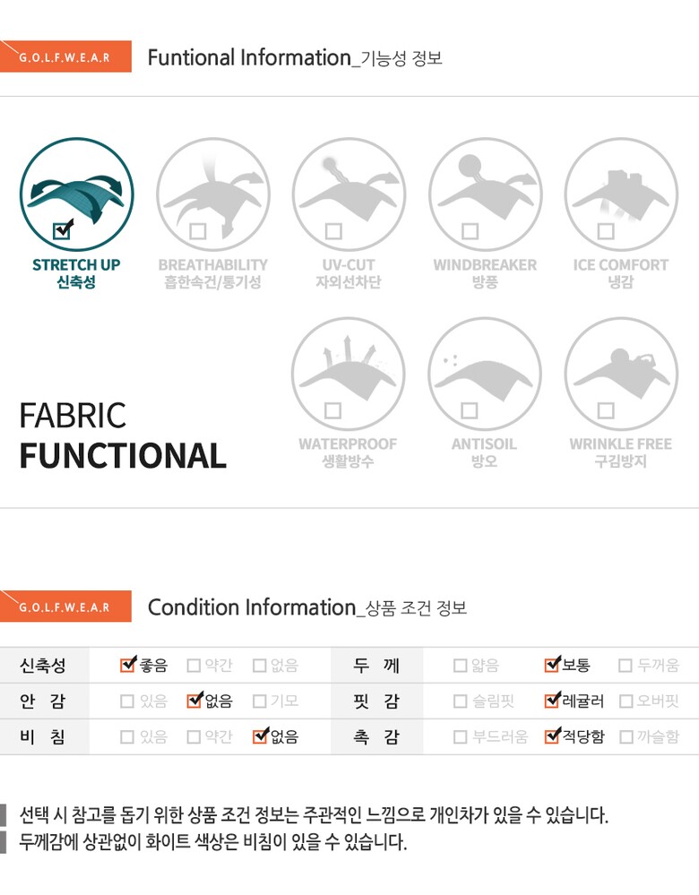 | 1. 제품 소재 (섬유의 조성 또는 혼용률을 백분율로 표시, 기능성인 경우 성적서 또는 허가서) | 상세설명참고 |