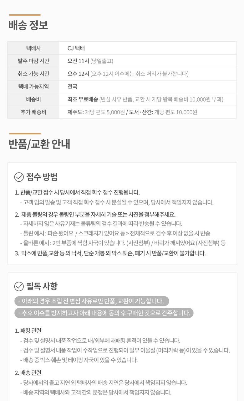 반품 유의사항