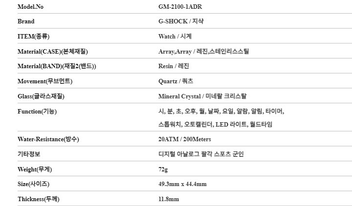 | 3. 제조사 | 지샥/MACHO-병행수입 |
