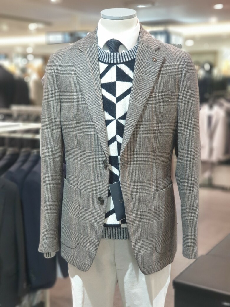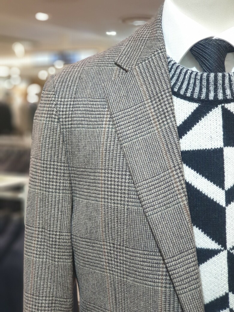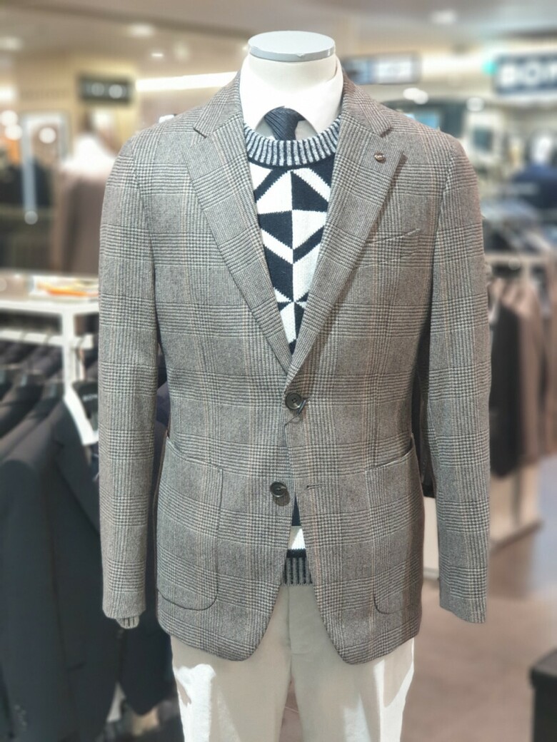 BON 24FW 브라운 이태리 직수입 울캐시미어 카마치아 글렌체크 캐주얼 슬림 자켓BN4WEA251BR