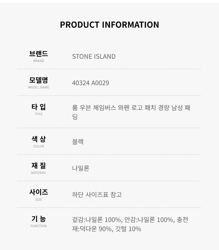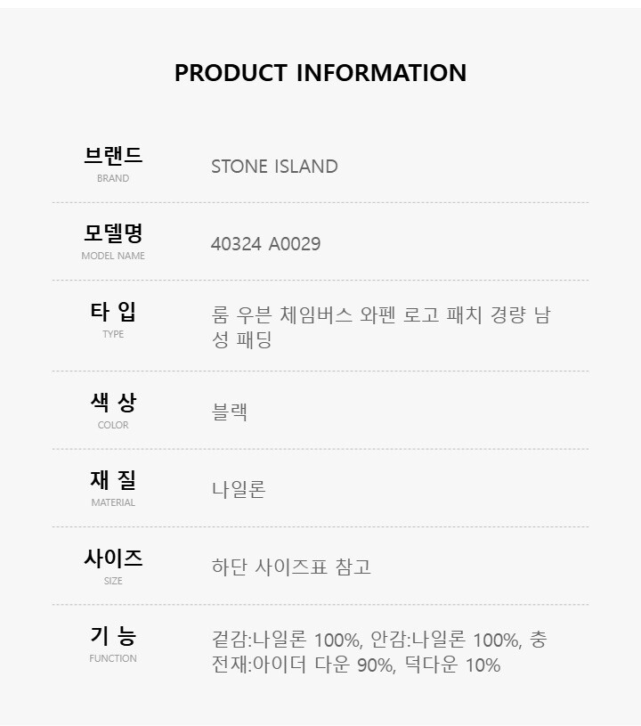 스톤아일랜드 패딩 40324 A0029 룸 우븐 체임버스 와펜 로고 패치 경량 남성패딩 당일발송