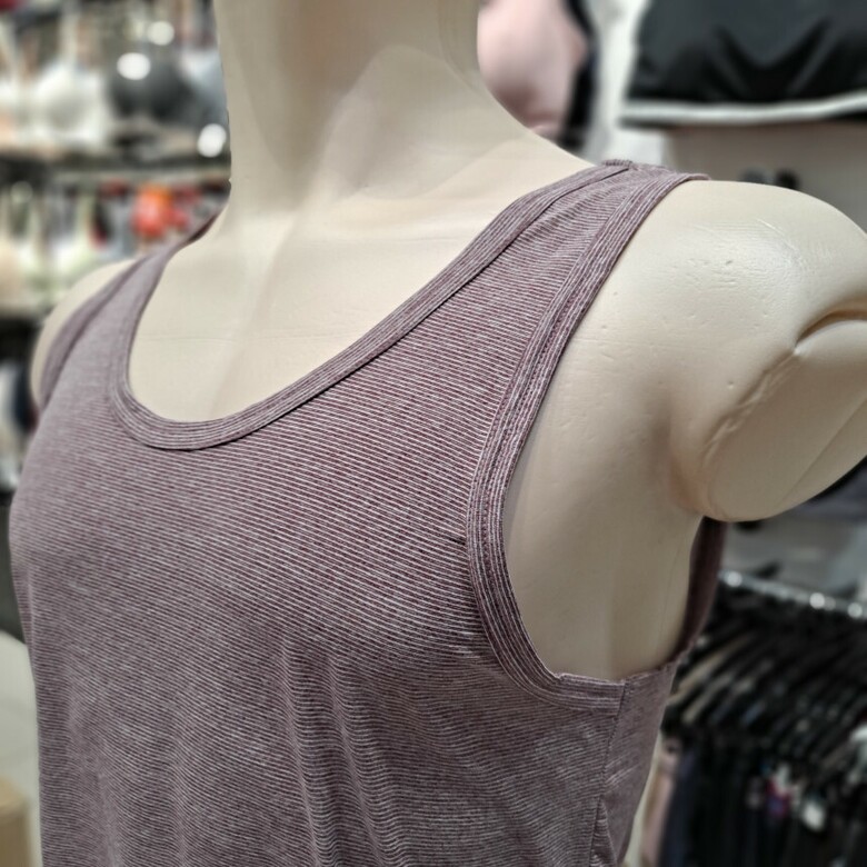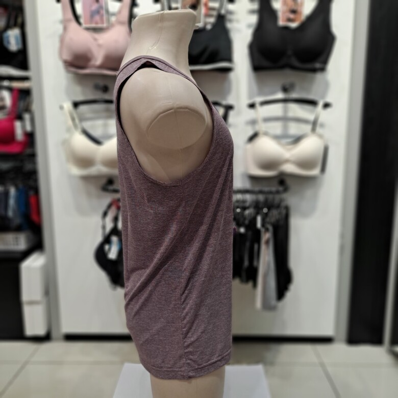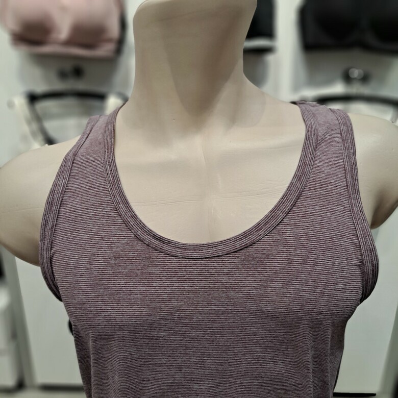 유니크 한 와인컬러감의 런닝제품으로 자잘한 스트라이프 라인이 깔끔하고 고급스러운 제품. 아스킨소재로 터치감이 부드럽고 흡습속건의 기능성이 있어 여름철 시원하게 착용가능하며 활동이 많은 날에도 착용하기 좋은 제품.