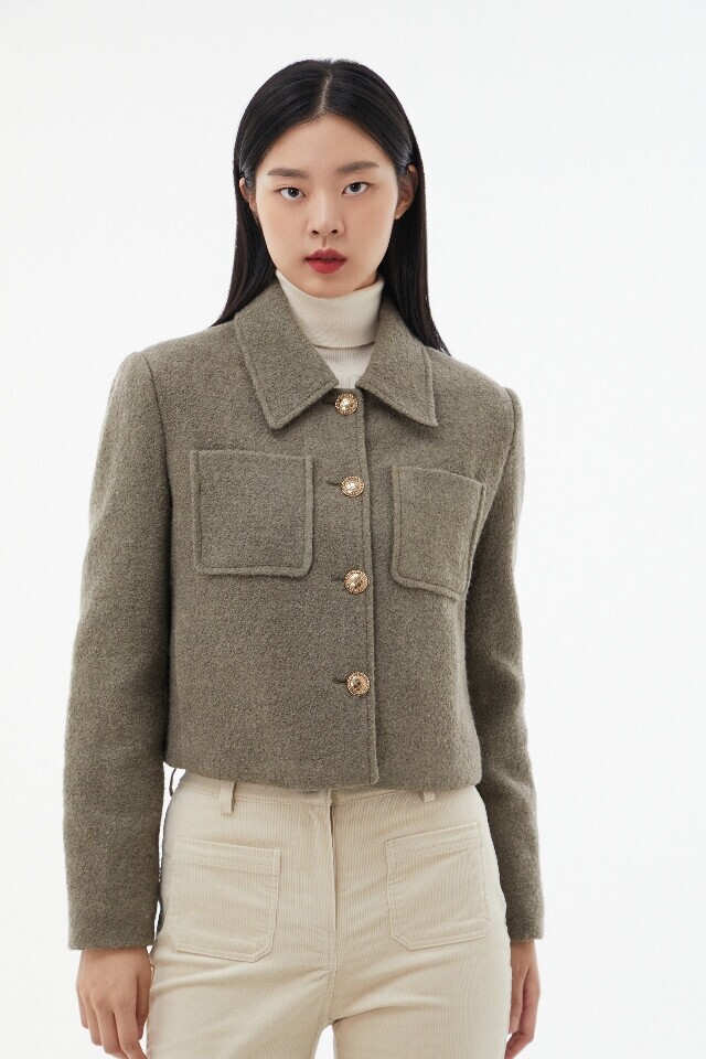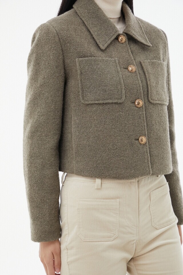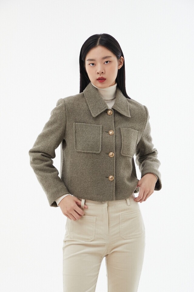 AP4WJA64 부클 싱글 카라 크랍 자켓 (퀼팅 안감)