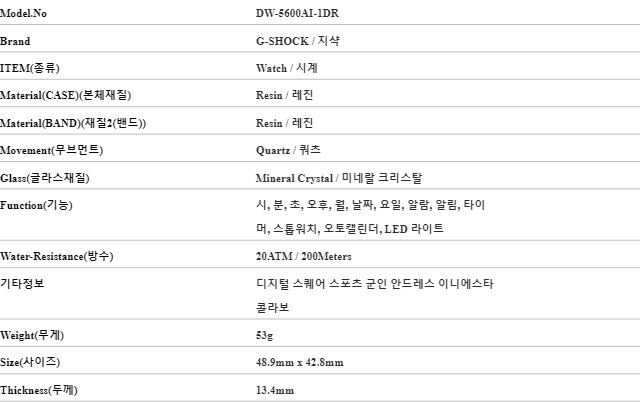 1. 소재 / 순도 / 밴드재질 / 케이스 - 레진 / 밴드 - 레진