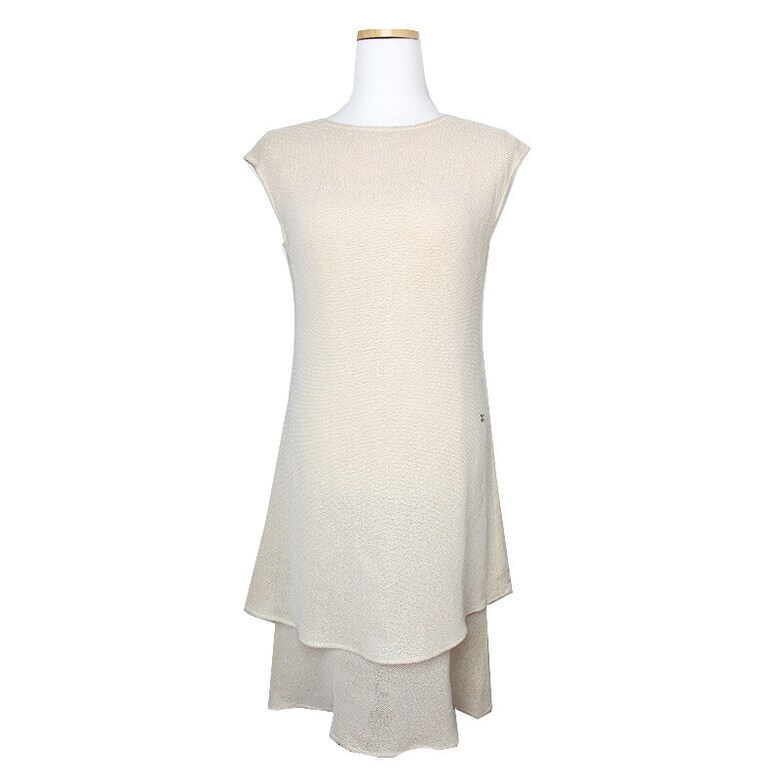[중고명품] 샤넬 베이지 니트 슬리브리스 원피스 55