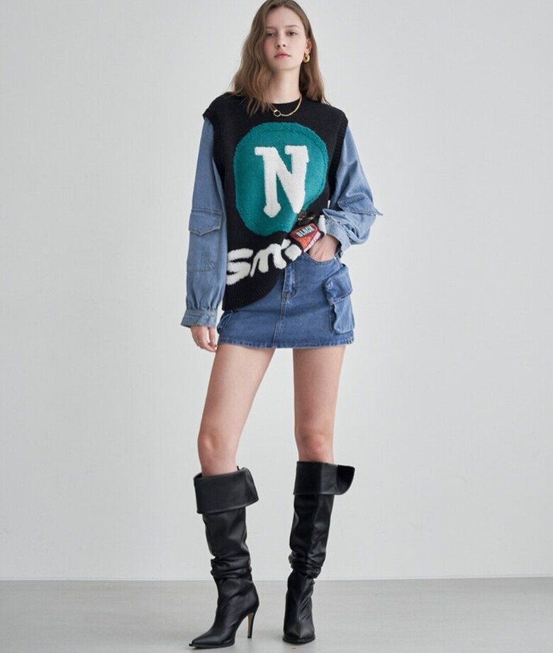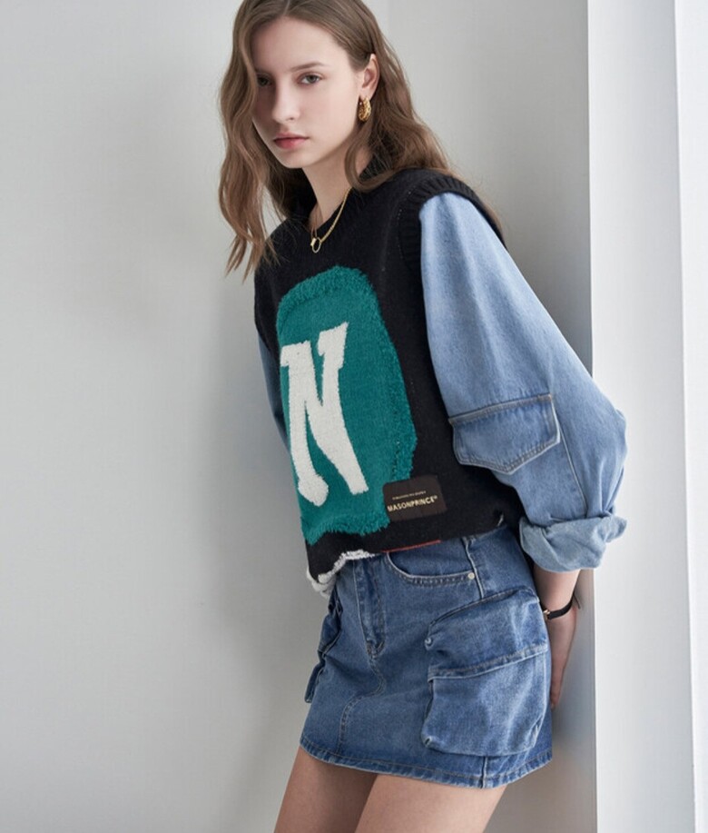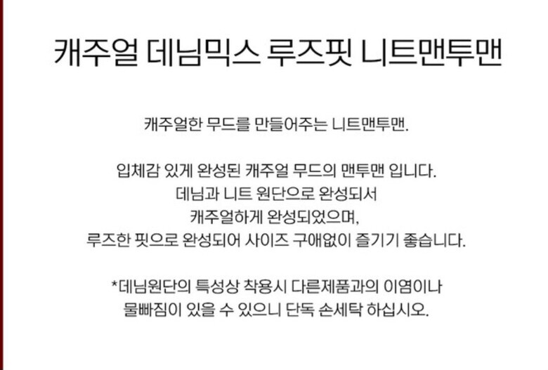 르니앤맥코이 캐쥬얼 데님믹스 루즈핏 니트맨투맨ML11KN775