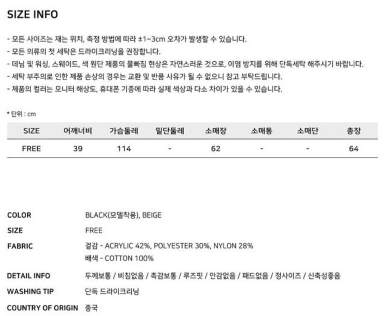 | 6. 세탁방법 및 취급시 주의사항 | 상품상세참조 |