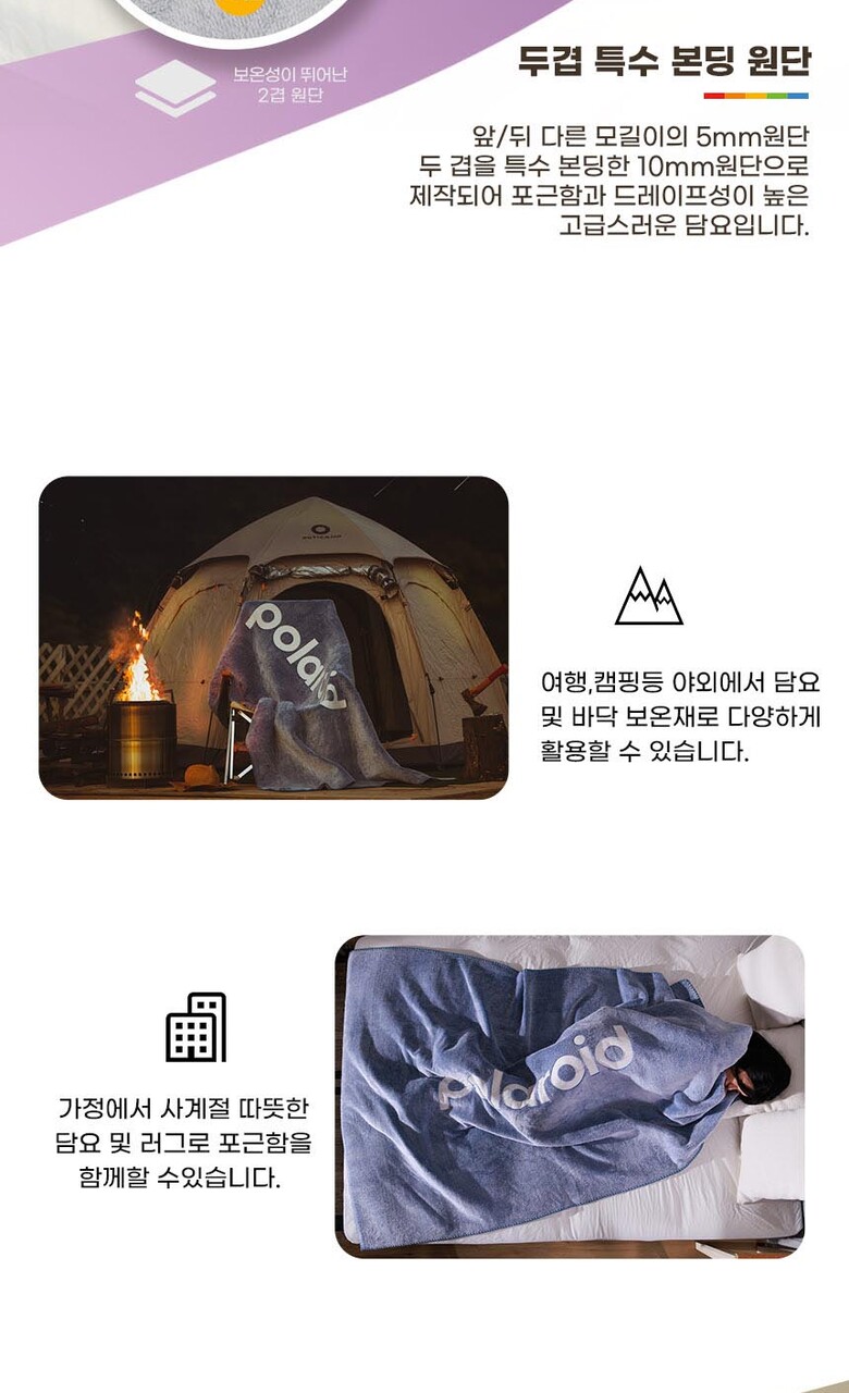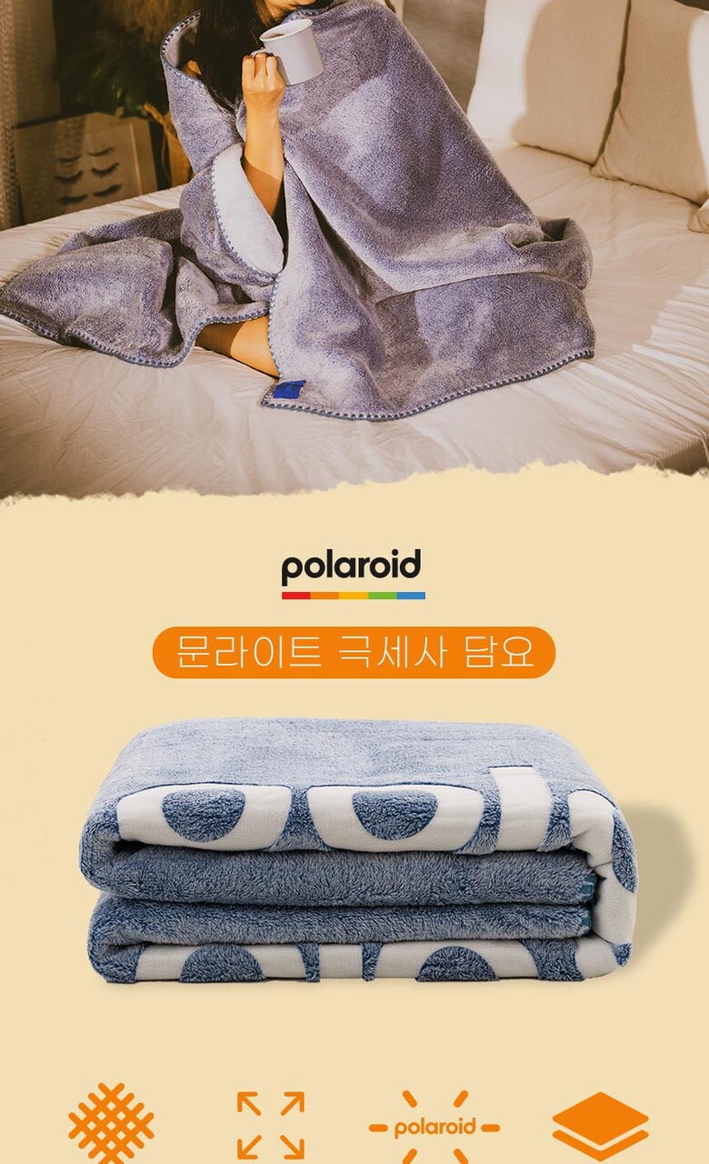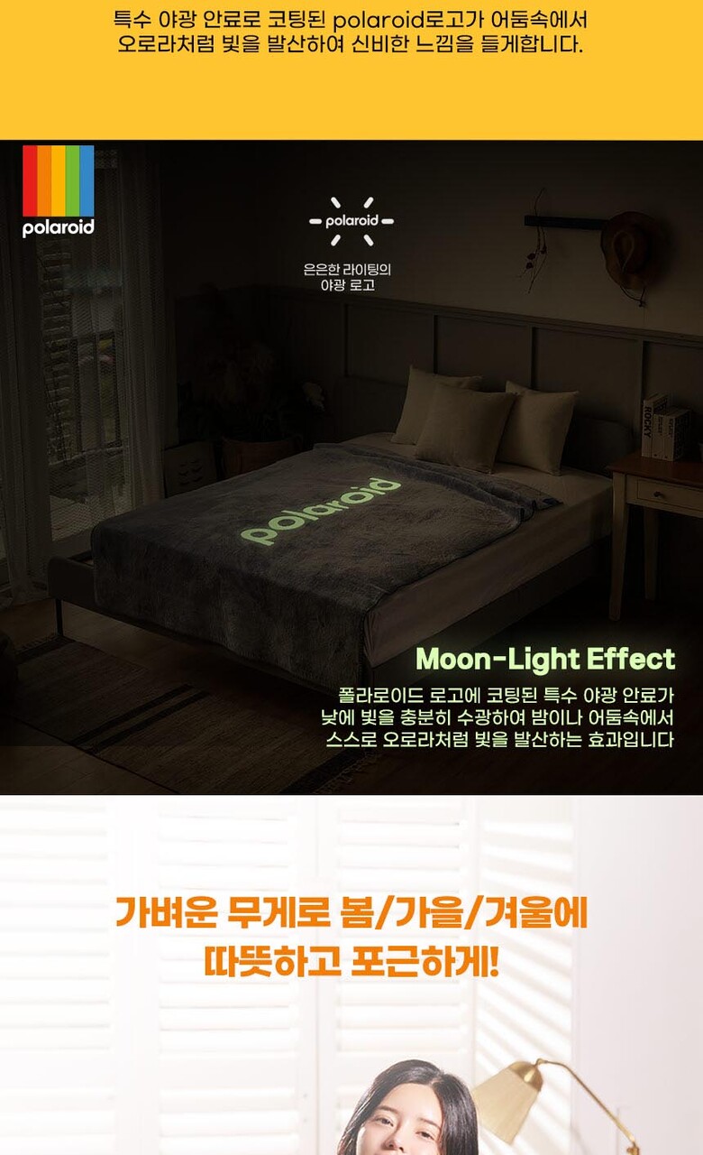 Polaroid 문라이트 극세사 담요 (어둠속에 빛나는 폴라로이드 로고)