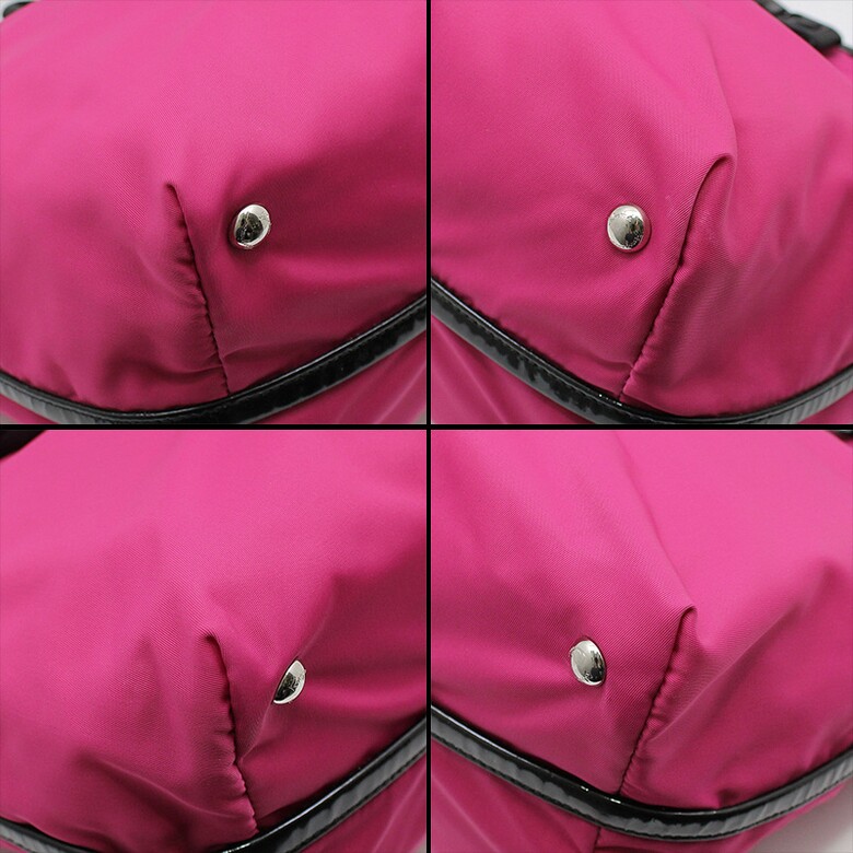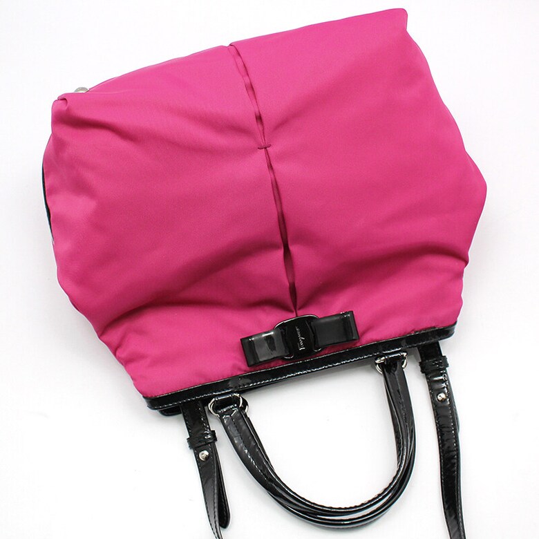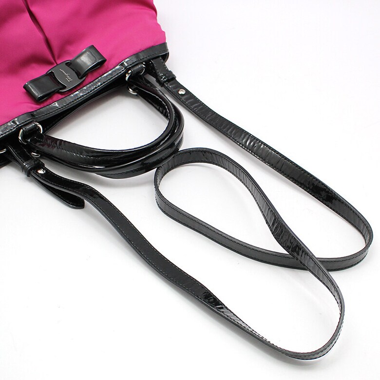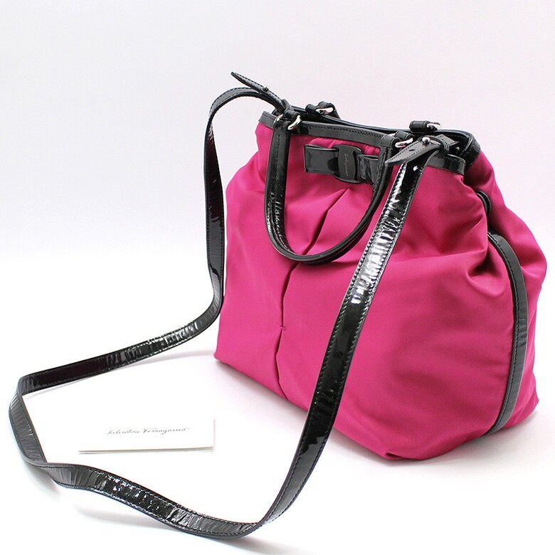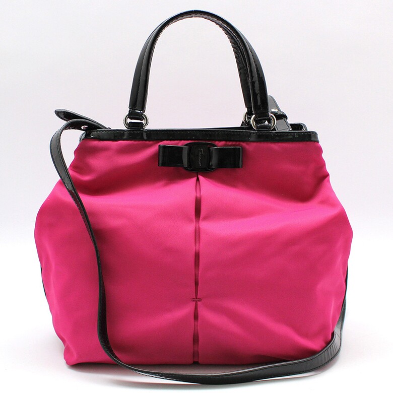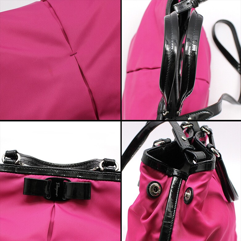 페라가모 21-E309 핫핑크 패브릭 블랙 페이던트 바라 숄더 크로스백