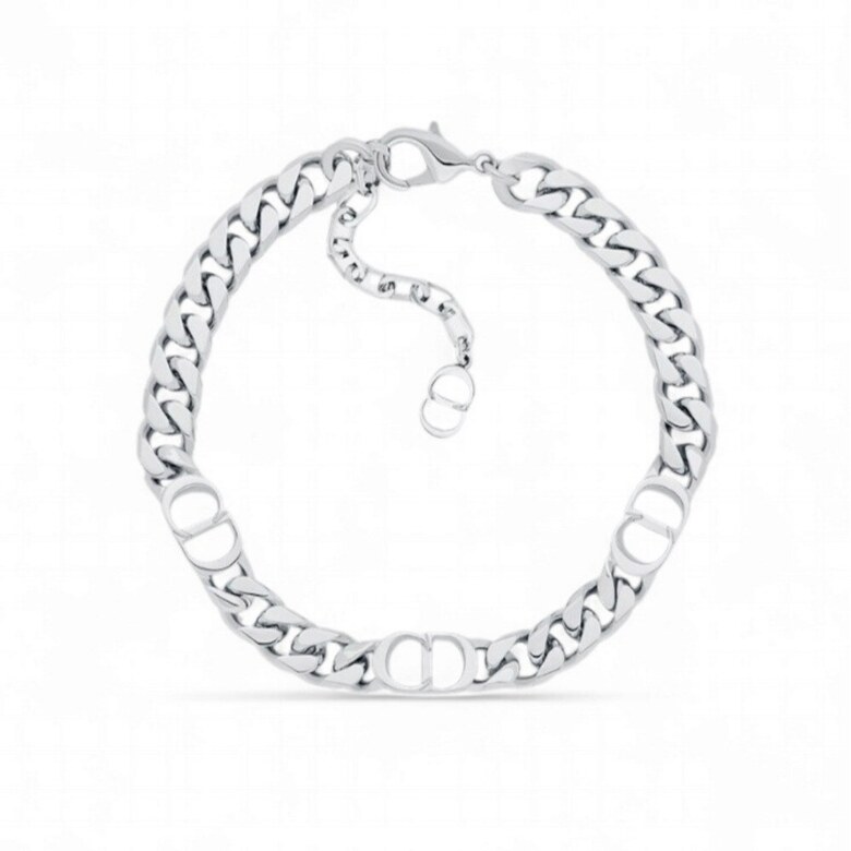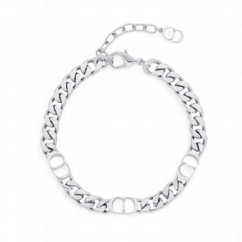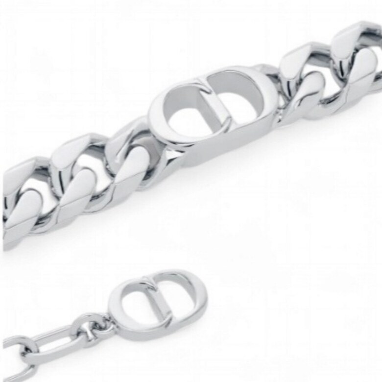 디올 CD 아이콘 슬림 체인 링크 팔찌 실버 피니쉬 브래스