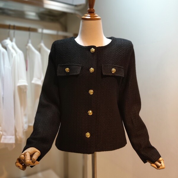 FW22A06X66828_블랙 트위드 라운드 자켓