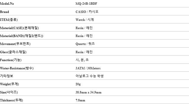 카시오 MQ-24B-1BDF (MQ-24B-1B) 아날로그 수능 학생 공용 우레탄 시계