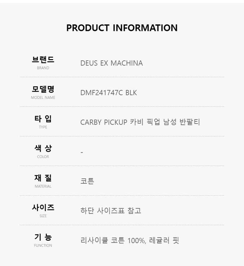 데우스엑스마키나 DMF241747C BLK CARBY PICKUP 카비 픽업 남성 반팔티