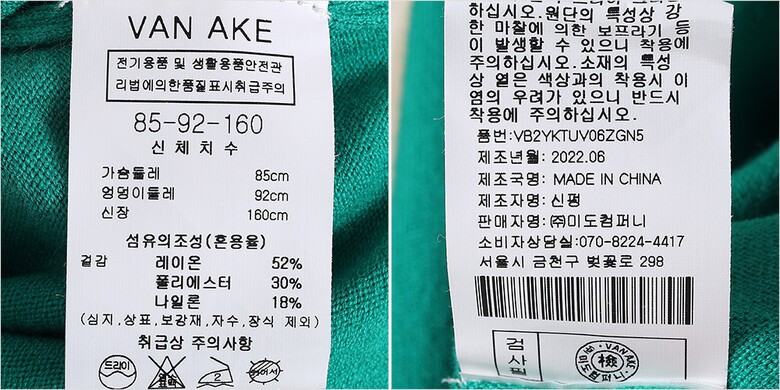 | 1. 제품 소재 (섬유의 조성 또는 혼용률을 백분율로 표시, 기능성인 경우 성적서 또는 허가서) | 겉감-폴리에스터30% 나일론18% 레이온52% |