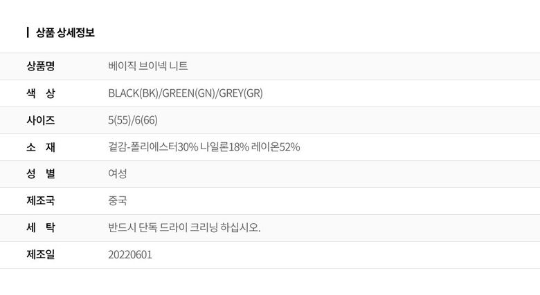| 6. 세탁방법 및 취급시 주의사항 | 상세페이지 참조 |