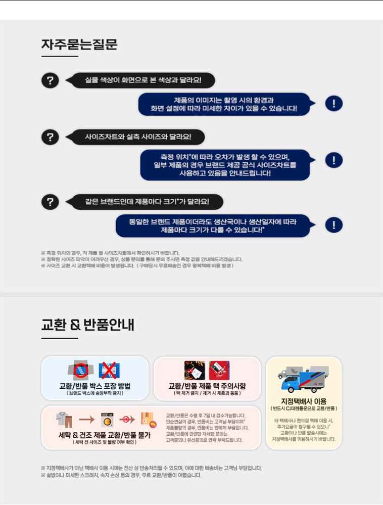 • 업체배송 상품은 해당 각 입점사의 교환정책에 따릅니다.
