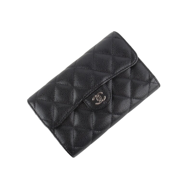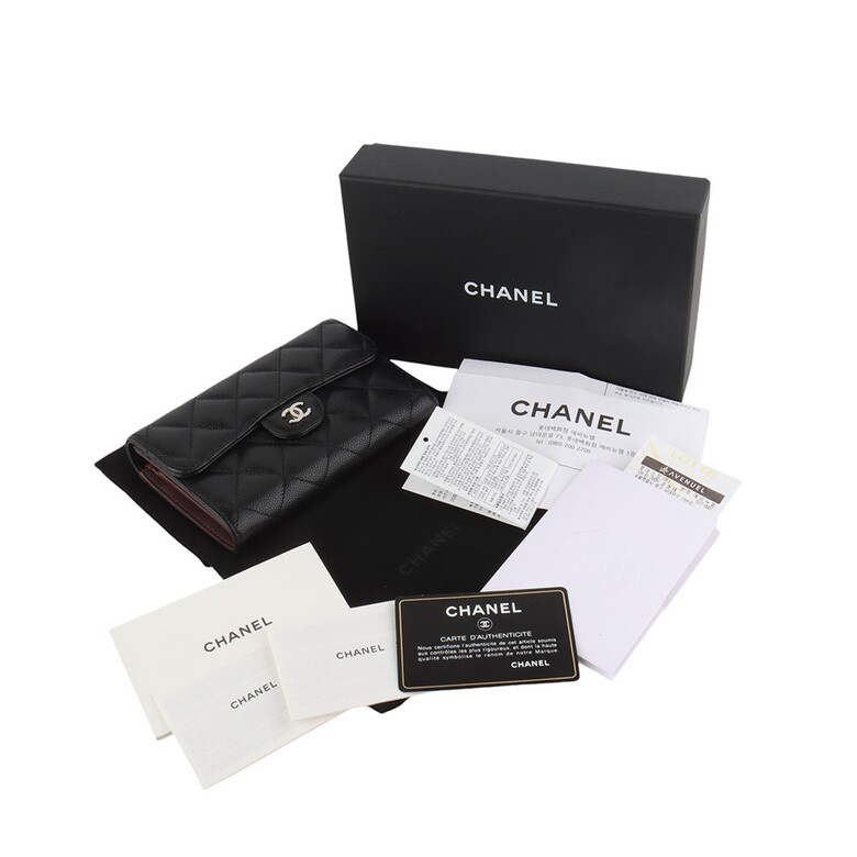 ▣ 샤넬 AP0232 클래식 캐비어 은장 CC로고 중지갑 (백화점인보이스)▣