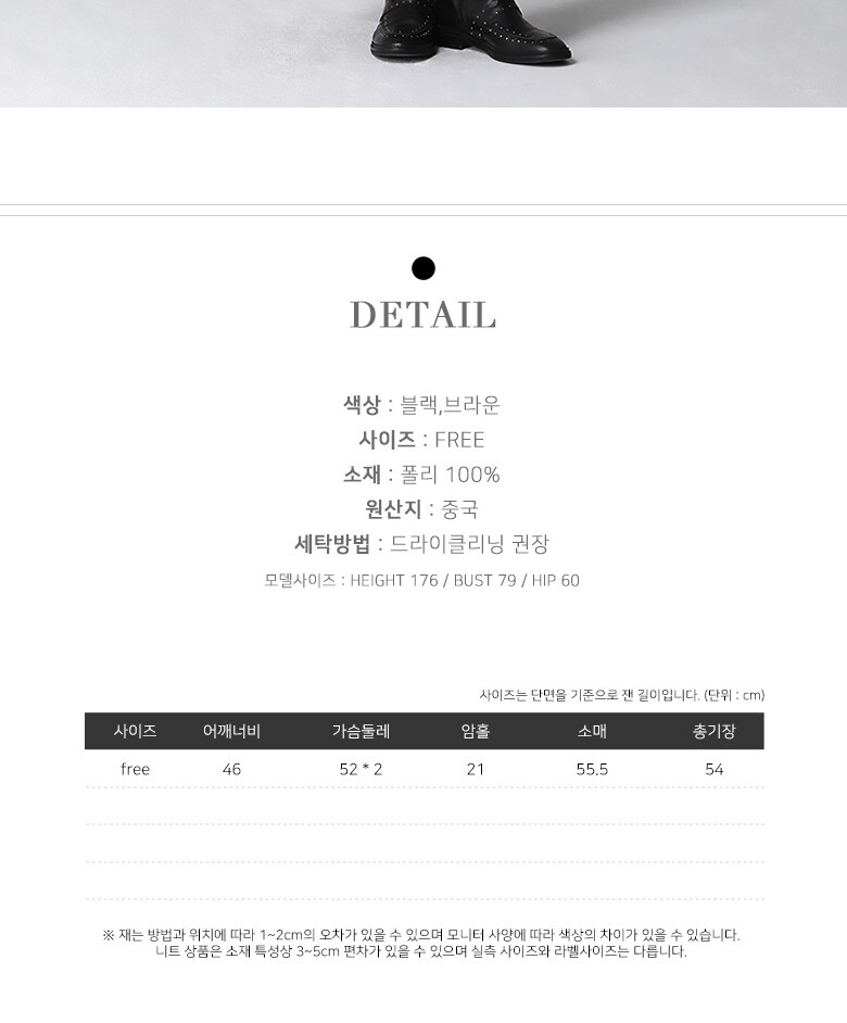 • 처음 배송된 상품상태와 다를 경우(세탁/착용 후 외출하신 경우) 반품이 불가합니다.