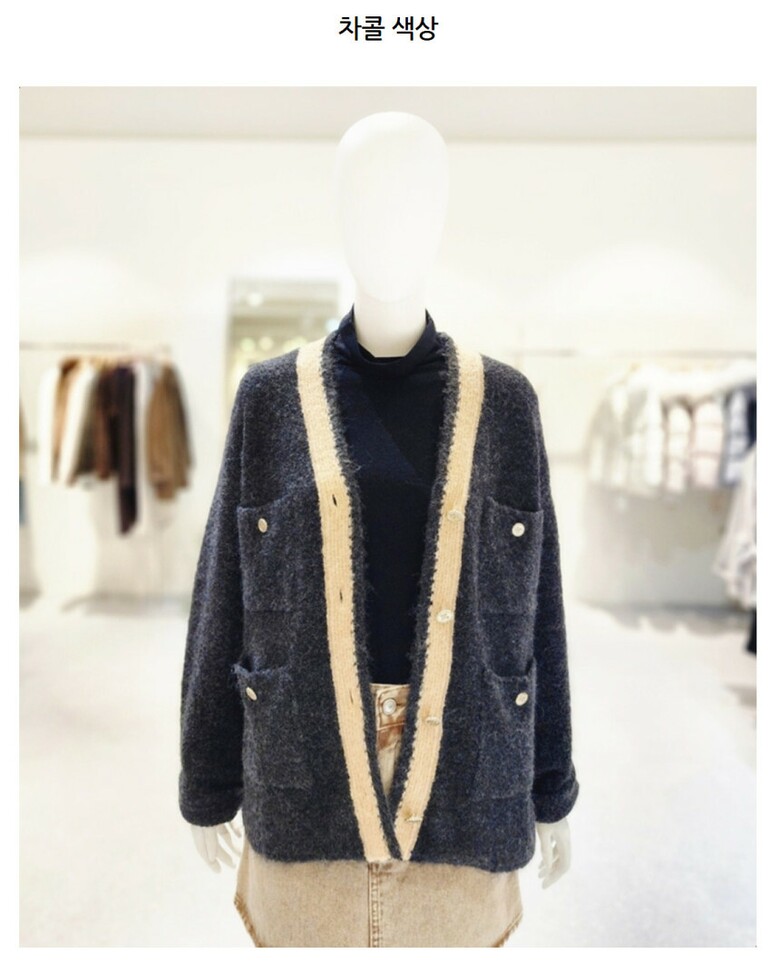 부클 배색 디테일 루즈핏 가디건 NJK4WD913