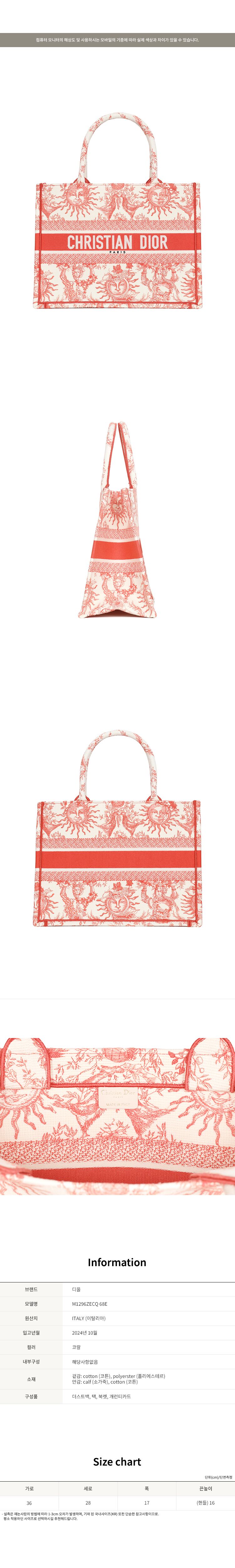 [명품] 디올 24FW 코랄 디올리비에라 북 토트 미디엄백 M1296ZECQ 68E