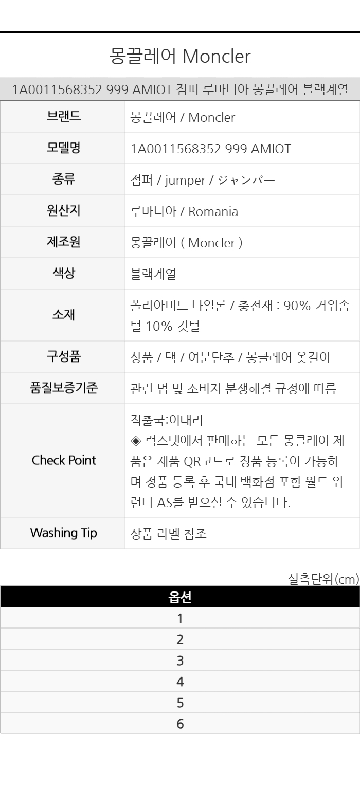 | 6. 세탁방법 및 취급시 주의사항 | 상품상세 참조 |