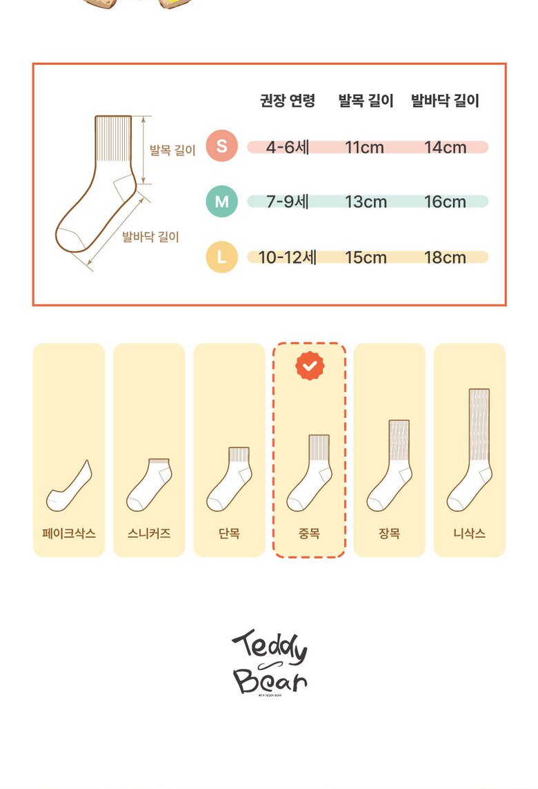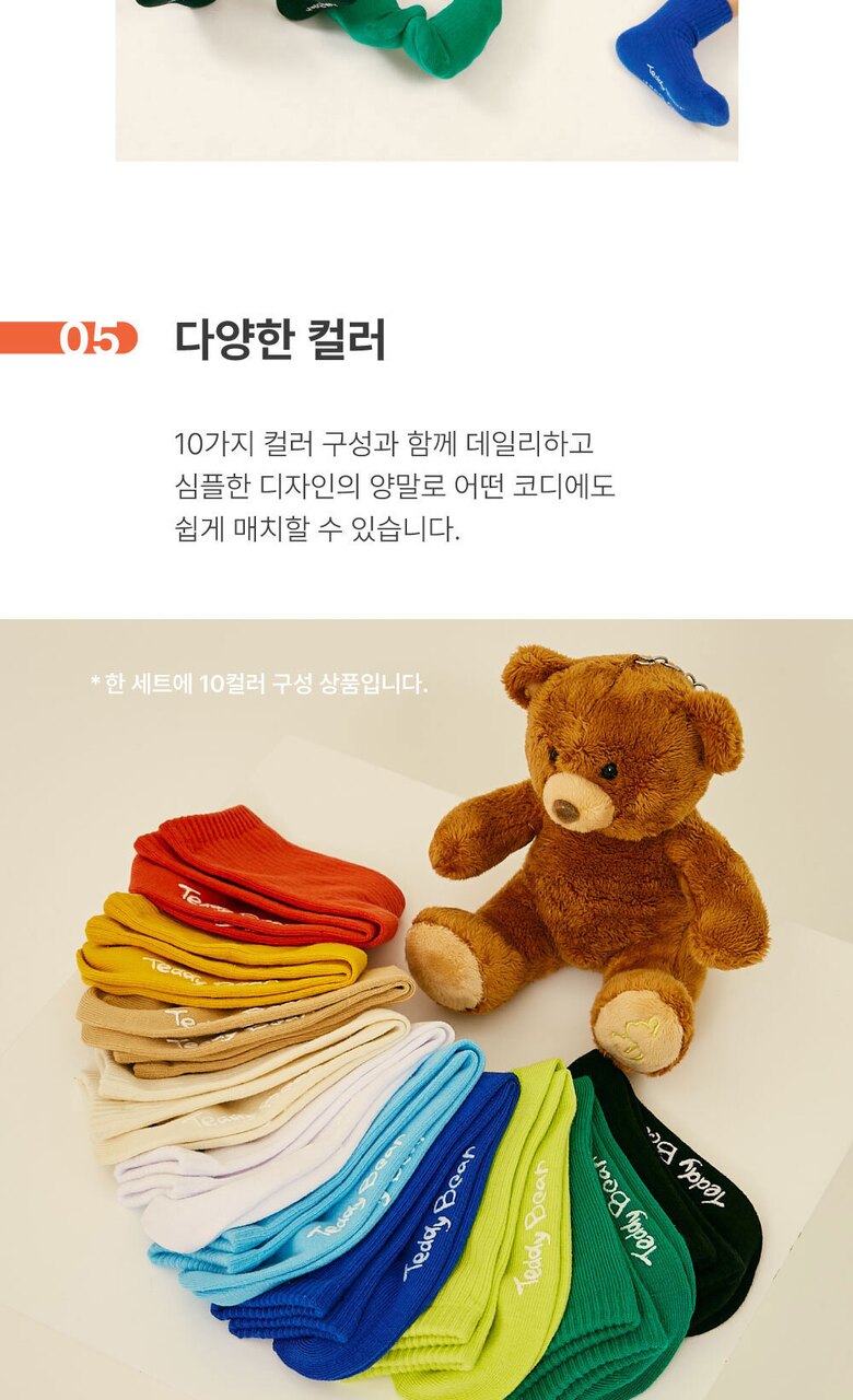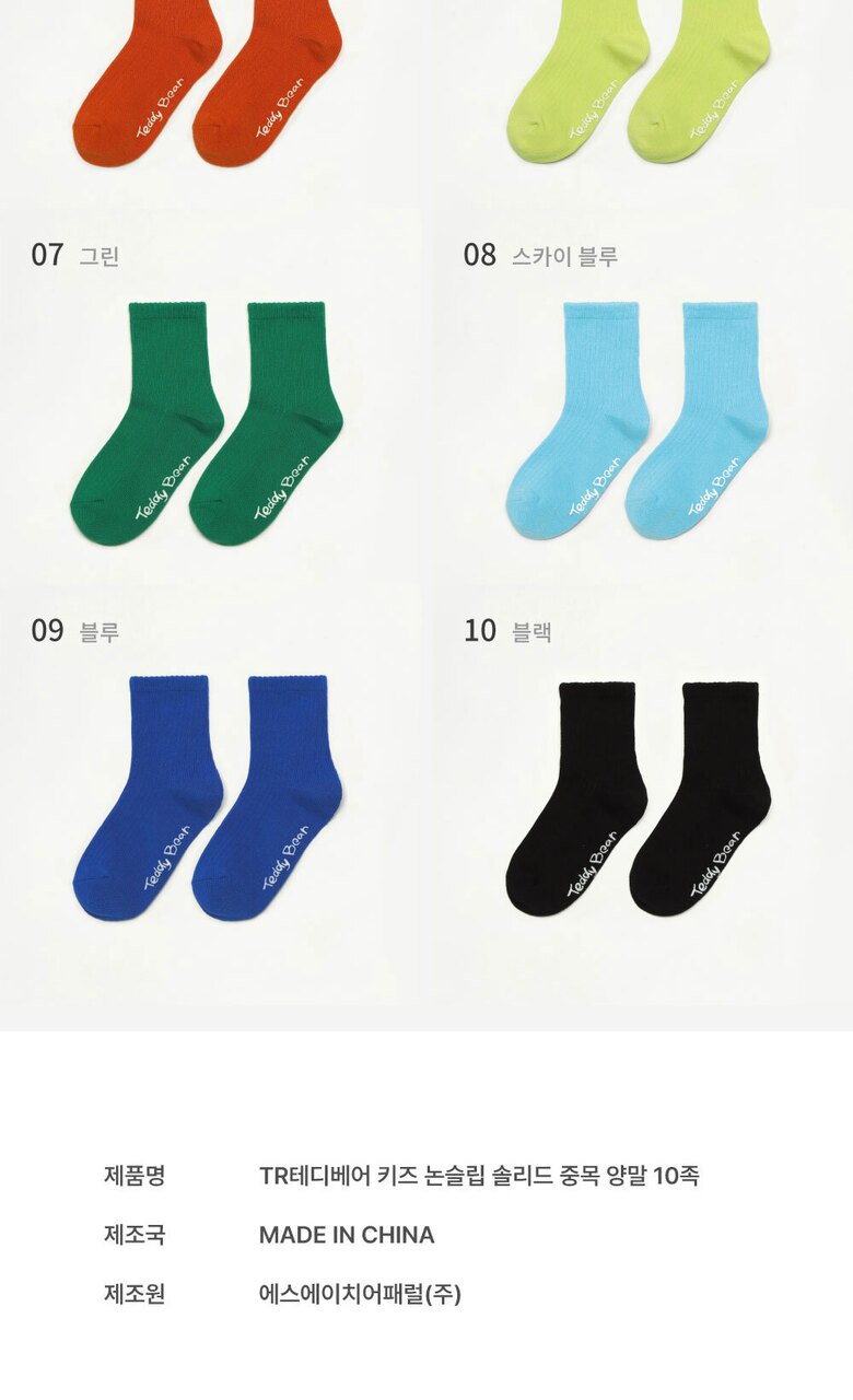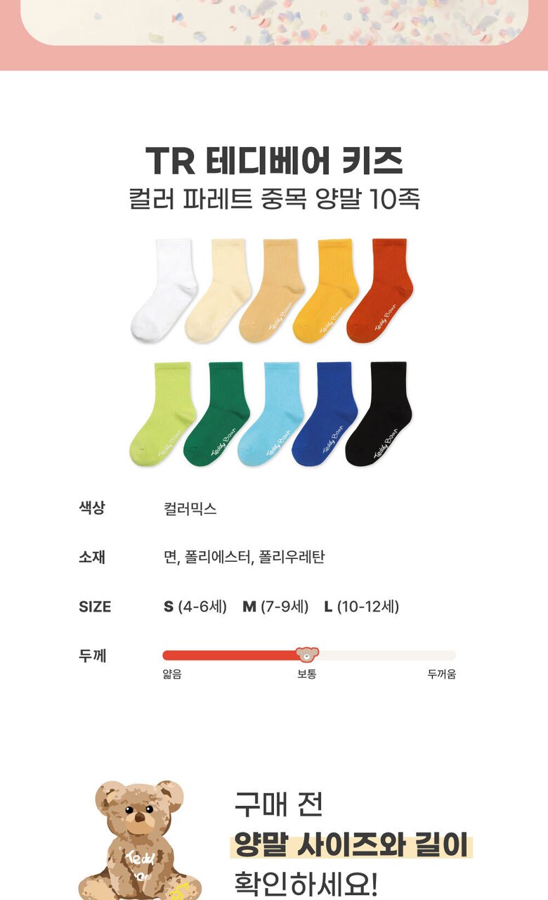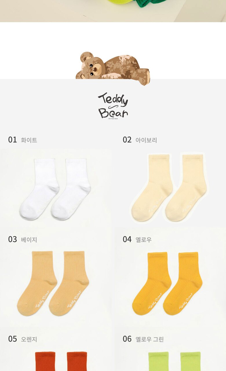 TR테디베어(Teddy Bear) 키즈 컬러 팔레트 중목 양말 10족