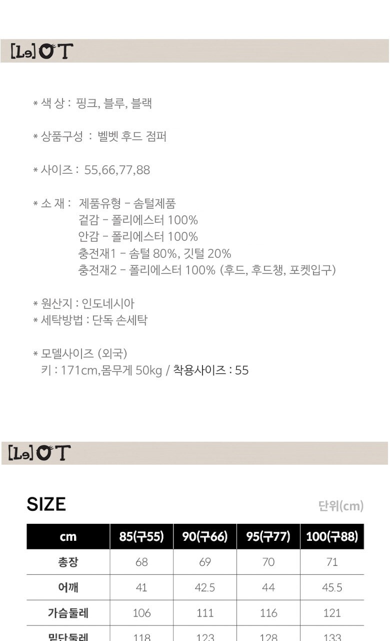 겉감 - 폴리에스터 100%