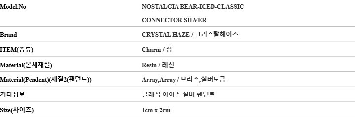 크리스탈헤이즈 NOSTALGIA BEAR-ICED-CLASSIC CONNECTOR SILVER 노스텔지아 베어 클래식 아이스 실버 펜던