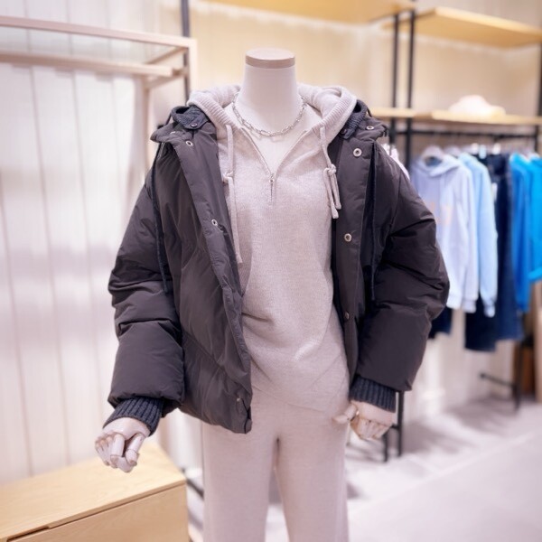 사선 패턴 니트후드 다운점퍼?니트 후드 탈착으로 다양하게 코디 가능하며?덕다운으로 보온성은 물론?데일리룩으로 손색 없는 다운 점퍼 입니다