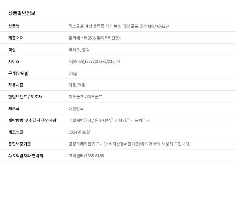 | 1. 제품 소재 (섬유의 조성 또는 혼용률을 백분율로 표시, 기능성인 경우 성적서 또는 허가서) | 상세설명참고 |
