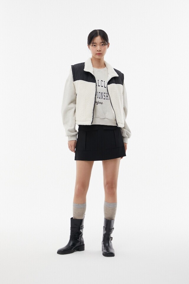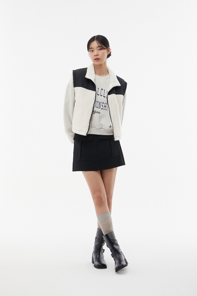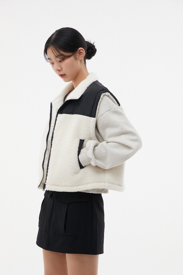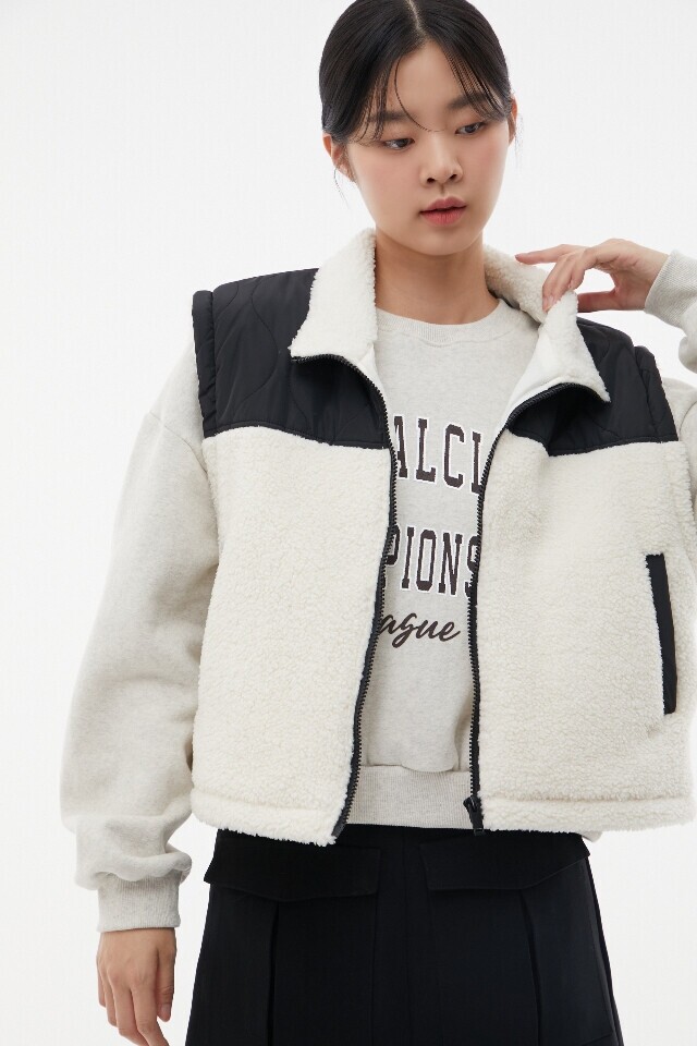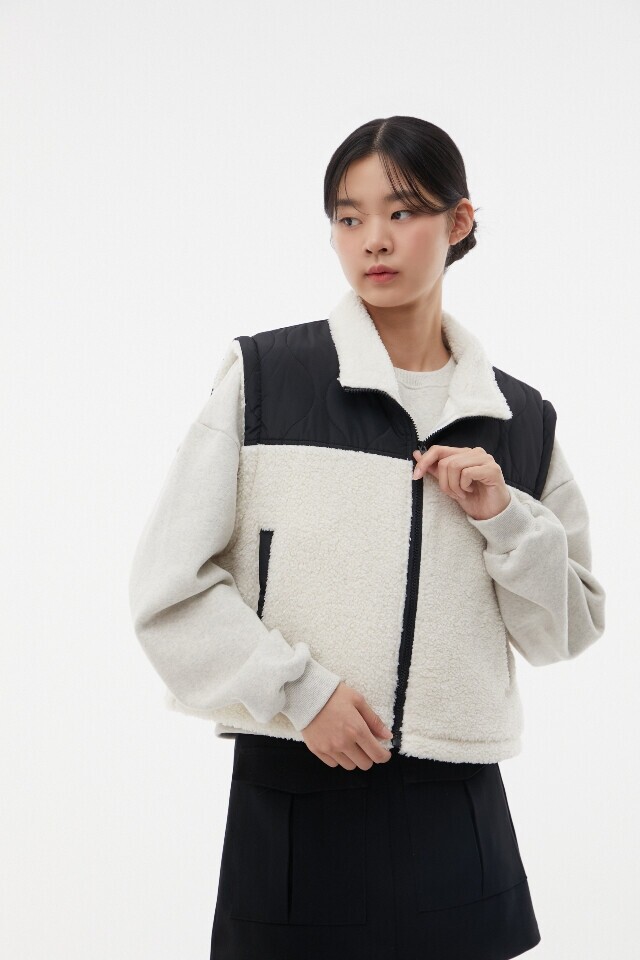 AP4MVA60 퀼팅 배색 무스탕 베스트
